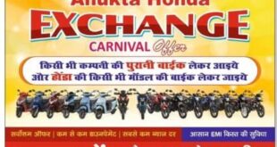 गाजीपुर। भारत के सबसे विश्वसनीय बाइक निर्माता कंपनी होण्डा के शोरुम अनुक्ता होण्डा रौजा-मऊ रोड गाजीपुर ने जिले के बाइक ग्राहकों के लिए एक्सचेंज कार्निवाल ऑफर का ऐलान किया है। इस संदर्भ में अनुक्ता होण्डा के प्रोपराइटर राहुल राय ने बताया कि अनुक्ता होण्डा एक्सचेंज कार्निवाल आफर स्कीम के तहत …