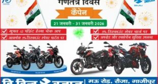 गाजीपुर। भारत की प्रख्यात बाईक निर्माता कंपनी बजाज ऑटो लिमिटेड के डीलर द हिन्द बजाज, मऊ रोड रौजा गाजीपुर ने गणतंत्र दिवस पर जनपदवासियो के लिए बजाज की बाइक खरीद पर बम्पर स्कीम का ऐलान किया है। द हिन्द बजाज प्रोपराईटर रिशू भाई ने पूर्वांचल न्यूज डॉट काम को बताया …