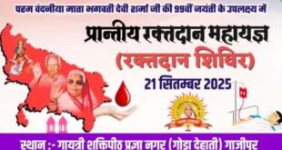 गाजीपुर। अखिल विश्व गायत्री परिवार की संस्थापिका,संरक्षिका परम् वंदनीया माता भगवती देवी शर्मा जी की 99वीं जयंती के अवसर पर गायत्री परिवार के प्रांतीय युवा प्रकोष्ठ उत्तर प्रदेश के आवाहन व गायत्री तीर्थ शान्तिकुन्ज हरिद्वार के तत्वावधान में उत्तर प्रदेश के सभी जिलों में सेवा साधना अभियान के अंतर्गत विश्व …
