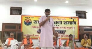 गाजीपुर। साहित्य चेतना समाज’ के तत्वावधान में ‘चेतना -प्रवाह’ कार्यक्रम के अन्तर्गत ‘विश्व हिन्दू परिषद्’ के जिला-अध्यक्ष विनोद उपाध्याय के आयोजन में डेढ़गावां स्थित ‘श्रीकृष्ण राधिका मैरेज हाल’ में एक सरस काव्यगोष्ठी का आयोजन किया गया। जिसकी अध्यक्षता भोजपुरी के वरिष्ठ कवि विनय राय ‘बबुरंग’ ने की एवं मुख्य अतिथि …