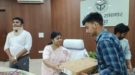 गाजीपुर। महिला कल्याण विभाग द्वारा संचालित योजना उ0प्र0 मुख्यमंत्री बाल सेवायोजना अंतर्गत कोविड-19 महामारी से मृतक अभिभावकों के बच्चों को 18 वर्ष की आयु तक राज्य सरकार द्वारा प्रतिमाह 4000/-रू0 की आर्थिक सहायता प्रदान की जाती है। योजना के तहत लाभ प्राप्त कर रहे कक्षा 09 या इसके उपर के कक्षा में अथवा व्यवसायिक शिक्षा प्राप्त कर रहे बच्चों को टैबलेट/लैपटाप की सुविधा एक बार उपलब्ध कराया जाता है। जनपद में योजना के तहत वर्तमान में 53 बच्चे लैपटॉप वितरण हेतु चिन्हित हुए थे। जिसके क्रम में रायफल क्ल्ब (कलेक्ट्रेट सभागार) में मा0 सांसद राज्यसभा डा0 संगीता बलवंत, की गरिमामयी उपस्थिति में 42 उपस्थित लाभार्थी बच्चों को लैपटॉप का वितरण किया गया। कार्यक्रम में जिला विकास अधिकारी सुभाष चन्द्र सरोज, जिला प्रोबेशन अधिकारी संजय कुमार सोनी एवं अन्य स्टाफ उपस्थित रहें।
