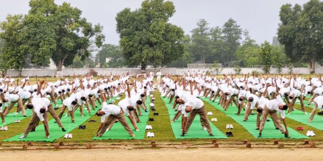 गाजीपुर। आज दिनांक 21 जून 2025 को 11वें अंतर्राष्ट्रीय योग दिवस के अवसर पर रिजर्व पुलिस लाइन गाजीपुर में एक भव्य योग कार्यक्रम का आयोजन किया गया। इस वर्ष योग दिवस की थीम “एक पृथ्वी एक स्वास्थ्य” रही ,जो समग्र स्वास्थ्य, पर्यावरण संतुलन और वैश्विक एकता के संदेश को प्रतिबिंबित करती है। जिसमें श्रीमान पुलिस अधीक्षक गाजीपुर महोदय, अपर पुलिस अधीक्षक नगर , क्षेत्राधिकारी नगर एवं अन्य अधिकारी कर्मचारीगण मौजूद रहे। इस अवसर पर योगाचार्य द्वारा उपस्थित अधिकारियों, पुलिस कर्मियों एवं जेटीसी प्रशिक्षणरत रिक्रूटों व आमजन को योगाभ्यास कराया गया तथा सभी से अपने दैनिक जीवन में योग को अपनाने की अपील की गई। कार्यक्रम के दौरान योग के महत्व एवं लाभों के विषय में विस्तार से बताया गया तथा योग के माध्यम से शारीरिक व मानसिक रूप से स्वस्थ और निरोग रहने का संदेश दिया गया। योग के अभ्यास से जीवन में संतुलन, अनुशासन एवं सकारात्मक ऊर्जा प्राप्त होती है, इस भाव के साथ कार्यक्रम का सफल आयोजन किया गया।