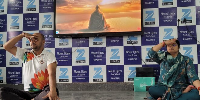 गाज़ीपुर। 11वाँ अंतर्राष्ट्रीय योग दिवस 2025 के अवसर पर माउंट लिट्रा ज़ी स्कूल, गाज़ीपुर में शिक्षकों एवं स्टाफ सदस्यों ने बढ़-चढ़कर भाग लिया। इस अवसर पर पूरे विद्यालय में सकारात्मक एवं योगमय वातावरण देखने को मिला। कार्यक्रम के दौरान शिक्षकों ने विभिन्न योगासन एवं प्राणायाम का अभ्यास किया और तनावमुक्त, स्वस्थ एवं सशक्त जीवन के लिए योग को अपनी दिनचर्या में शामिल करने का संकल्प लिया। इस अवसर पर विद्यालय के प्रधानाचार्य डॉ. राजेश कारकुन ने योग के महत्व और इसके आधुनिक जीवन में प्रासंगिकता पर संदेश दिया। उन्होंने कहा कि “योग न केवल शारीरिक स्वास्थ्य का माध्यम है, बल्कि मानसिक संतुलन, आत्म-अनुशासन एवं सकारात्मक सोच को भी विकसित करता है।” कार्यक्रम का उद्देश्य शिक्षकों और विद्यार्थियों में स्वास्थ्य जागरूकता, सकारात्मक ऊर्जा तथा योग को जीवनशैली का हिस्सा बनाने के प्रति प्रेरित करना रहा।