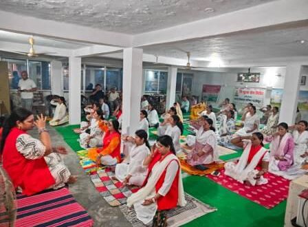 गाजीपुर। विश्व योग दिवस के अवसर पर भारत विकास परिषद एवं महिला पतंजलि योग समिति के सदस्यों द्वारा संयुक्त रूप से अनीता निकेतन तुलसी सागर पर योग शिविर का आयोजन किया गया। योग आरंभ करने से पूर्व भारत माता एवं स्वामी विवेकानंद जी के चित्र पर माल्यार्पण कर दीप प्रज्वलित किया गया। शरीर की संरचना में मिट्टी, हवा, पानी, आकाश और आग इन पांच तत्वों का समावेश है, इस पंच रचित शरीर को गतिमान रखने के लिए योग भी आवश्यक है। शिविर में परिषद की अध्यक्ष अनीता यादव ने योग के प्रति जागरुक करते हुए सबको योग के गुर सिखाएं। इस अवसर पर सचिव सुमन लता राय ,महिला संयोजिका अनीता तिवारी एवं कोषाध्यक्ष सिंधु सीता पांडे पूर्व अध्यक्ष शिवकुमार, वरिष्ठ सदस्य प्रमोद राय, जिला समन्वयक जितेंद्र यादव ,निरुपमा उपाध्याय, माया रानी, आरती यादव, शशि सक्सेना, शकुंतला यादव ,रंजनदीप, सुमादा यादव रीना पांडे, नीलम श्रीवास्तव ,अलका वर्मा मोहिनी श्रीवास्तव, आराधना पांडे, रीना देवी, रंजू यादव हीरामणि ,बबीता गुप्ता, शशि कला, रेनू सिंह सुनीता राय, वृंदा सिंह ,सुमन लता राय, अनीता तिवारी, अंजना राय, कल्पनाथ भारद्वाज, आरती सिंह ,चंद्रावती देवी, चिंता यादव, अरविंद कुमार राय ,पंकज कुमार तिवारी, पुष्पेंद्र पांडे, वीरेंद्र यादव, सुख विलास, जितेंद्र यादव , एच एन एस यादव श्री शिव कुमार, अनुपम आनंद, अनीता यादव आदि ने भाग लिया।
