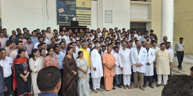 गाजीपुर। महर्षि विश्वामित्र स्वशासीय मेडिकल कालेज गाजीपुर के छात्र-छात्राओं से सीएम योगी मिले और उनके शिक्षा और अन्य सुविधाओं के बारे में विस्तृत रुप से जानकारी ली। अपने निर्धारित समय के कुछ विलंब से सीएम योगी पुलिस लाइन के हेलीपैड पर हेलीकाप्टर से उतरे। कैबिनेट मंत्री ओमप्रकाश राजभर, जल शक्ति मंत्री स्वतंत्रदेव सिंह, राज्यसभा सांसद नीरज शेखर, राज्यसभा सांसद डा. संगीता बलवंत, भाजपा के जिलाध्यक्ष ओमप्रकाश राय, जिला पंचायत अध्यक्ष सपना सिंह, भाजपा नेता आदित्य सिंह ने मुख्यमंत्री का स्वागत किया। इसके बाद सीएम योगी सीधे महर्षि विश्वामित्र स्वशासीय मेडिकल कालेज के प्रांगण में पहुंचे जहां पर निर्माणाधीन नर्सिंग होम की बिल्डिंग और मेडिकल कालेज के प्रशासनिक एवं शैक्षणिक भवनों का निरीक्षण किया। मेडिकल कालेज के छात्र-छात्राओं से सीएम योगी मिले। उन्होने हर पहलुओं पर छात्र-छात्राओं से चर्चा की। सीएम योगी ने शिक्षण कार्य, हॉस्टल व्यवस्था, मेडिकल सुविधाएं आदि के बारे में विस्तृत जानकारी ली। सीएम योगी से मिलकर मेडिकल कालेज के छात्र-छात्राएं काफी खुश दिखें। छात्र-छात्राओं ने बताया कि आज हम लोगों के लिए बहुत खुशी की बात है कि मुख्यमंत्री योगी आदित्यनाथ ने हमलोगों से वार्ता कर जानकारी प्राप्त किया।