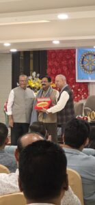 गाजीपुर। स्थानीय होटल नन्द रेसीडेंसी में रोटरी क्लब गाजीपुर ने अपना 71वां तथा इनर व्हील क्लब गाजीपुर ने अपना 34वां संयुक्त पदग्रहण समारोह कार्यक्रम का आयोजन किया | कार्यक्रम में जिला पंचायत अध्यक्ष सपना सिंह मुख्य अथिथि के रूप में उपस्थित रहीं | पदग्रहण समारोह कार्यक्रम में रोटरी क्लब के निवर्तमान अध्यक्ष रो० चंद्रेश्वर प्रसाद चौबे ने वर्ष 2024-25 के अपने कार्यकाल में किये गए सामाजिक कार्यों से सभी को अवगत कराया | साथ ही वर्ष 2024-25 के उनके कार्यकाल में बेहतरीन आपसी सामंजस्य व सहयोग के लिए रो० बरुन कुमार अग्रवाल, रो० विनीता सिंह, रो० असित कुमार सेठ, रो० संजर नासिर, रो० सैयद जीशान जिया, रो० विनय कुमार सिंह, रो० राजेश प्रसाद, डॉ0 उमेश चन्द्र राय को स्मृति चिन्ह व अंगवस्त्र भेंटकर सम्मानित किया गया | इसके अतिरिक्त मेगा ब्लड डोनेशन कैंप के लिए रो० डॉ0 राजेश कुमार सिंह, मेगा हेल्थ कैंप के लिए डॉ0 संजय सिंह, गणतंत्र दिवस आयोजन के लिए राजेश्वर सिंह, एमपॉवर वीमेन प्रोजेक्ट के लिए रो० संजय सिन्हा, शिक्षक दिवस व स्वतंत्रता दिवस के लिए सुशील तिवारी, रामलीला मैदान में पेयजल उपलब्धता के लिए रो० विनीत चौहान, वृहद् वृक्षारोपण एवं तीन दिवसीय दिव्यांग सहायता शिविर के लिए रो० डॉ0 सानंद सिंह, रो० आनंद सिंह, अमित सिंह, दिग्विजय उपाध्याय, चंद्रसेन तिवारी, श्रेया सिंह, प्रितीमा कुशवाहा,शिवांगी सिंह को स्मृति चिन्ह तथा सत्यदेव ग्रुप ऑफ़ कॉलेजेज के सभी शिक्षक-शिक्षिकाओं तथा वालंटियर के रूप में कार्यरत विद्यार्थियों सभी को प्रमाणपत्र से सम्मानित किया गया | इसके अतिरिक्त रो० चंद्रेश्वर प्रसाद चौबे ने रोटरी क्लब गाजीपुर के आधारस्तंभ व संस्था के नीवं माने जानेवाले संस्था के वरिष्ठतम सदस्य को उनके कुशल नेतृत्व, अद्वितीय कार्यशैली, समयबद्ध तरीके से कार्य पूरा कराने में निपुणता, अनुशासनप्रियता, समाजसेवा में सदैव बढ़-चढ़कर आगे रहने के लिए डायरेक्टर क्लब सर्विस रो० संजीव कुमार सिंह को स्मृतिचिन्ह व अंगवस्त्र से समानित किया। इस अवसर पर नव निर्वाचित अध्यक्ष रो० बरुन कुमार अग्रवाल तथा सचिव रो० अरबिंद कुमार शर्मा को विधिवत तरीके से रोटरी कॉलर पहनाकर एवं मुख्य अतिथि के हाथों आधिकारिक चार्टर सौंप कर अधिकारिक रूप से अध्यक्ष तथा सचिव का उत्तरदायित्व सौंपा गया। कार्यक्रम में रोटरी के नवनिर्वाचित अध्यक्ष रो० बरुन कुमार अग्रवाल ने मुख्य अतिथि जिला पंचायत अध्यक्ष सपना सिंह को रोटरी पिन पहनाकर रोटरी क्लब गाजीपुर के मानद सदस्य के तौर पर क्लब में शामिल किया | इसके अतिरिक्त भारतीय स्टेट बैंक के मुख्य प्रबन्धक अमरनाथ यादव को रोटरी पिन पहनाकर रोटरी क्लब गाजीपुर की सदस्यता प्रदान की गयी। इसके अवसर पर इनर व्हील क
