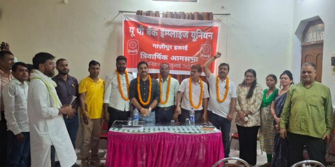 गाजीपुर। यूपीबीईयू गाज़ीपुर इकाई की त्रिवार्षिक आमसभा में बैंक ऑफ इंडिया के राम जी अध्यक्ष व सत्येंद्र गुप्ता निर्विरोध मंत्री चुने गए। शहर के लंका क्षेत्र में स्थित एक होटल में सम्पन्न हुई बैंक यूनियन की आमसभा में विभिन्न बैंको के कर्मचारी शामिल हुए। इस त्रिवार्षिक आमसभा की अध्यक्षता संयुक्त रूप से निवर्तमान कार्यकारिणी के उपाध्यक्ष संतोष राय इंडियन बैंक व कमलेश सिंह पीएनबी ने की। निवर्तमान कार्यकारिणी के जिला संयुक्त मंत्री सत्येंद्र गुप्ता ने सभा का संचालन किया। सत्येंद्र गुप्ता ने कहा कि यूनियन के आगरा में प्रस्तावित राज्य सम्मेलन से गाज़ीपुर इकाई का चुनाव यूनियन विधान के अनुसार करवाना था। आमसभा में आगामी त्रिवार्षिक सत्र के लिये नए पदाधिकारियों का चुनाव सर्वसम्मति से सम्प्पन्न किया। चुनाव अधिकारी श्री प्रकाश तिवारी पूर्व प्रबंधक पीएनबी की देखरेख में चुनाव प्रक्रिया सम्पन्न हुई। जिला अध्यक्ष पद पर बैंक ऑफ इंडिया के राम जी और जिला मंत्री पद पर पीएनबी के सत्येन्द्र गुप्ता के अलावा उपाध्यक्ष पद पर पीएनबी के कमलेश कुमार सिंह, इंडियन बैंक के राकेश शर्मा व केनरा बैंक के सुनील कुमार चुने गए। संयुक्त मंत्री पद पर बैंक ऑफ बड़ौदा सुनील उपाध्याय, कोषाध्यक्ष पद पर बैंक ऑफ इंडिया के आशुतोष राय व आडीटर पद पीएनबी के कृष्ण देव सिंह चुने गए। संगठन मंत्री पद पर पीएनबी के आलोक प्रकाश, बैंक ऑफ बड़ौदा के ओबैश, केनरा बैंक के नितिन राय, बैंक ऑफ बड़ौदा भानु राय चुने गए। सहायक मंत्री पद पर पीएनबी के शुभम सिंह, सेंट्रल बैंक ऑफ इंडिया के सुनील सिंह, बैंक ऑफ इंडिया के शुभम जायसवाल, यूको बैंक की मेघा वर्मा, अशोक सिंह पीएनबी, पंजाब एंड सिंध बैंक से उमाशंकर चौधरी, पीएनबी दीवान तौहीद खान, ग्रामीण बैंक से डी के साहू चुने गए गई। महिला संयोजिका सेंट्रल बैंक ऑफ इंडिया की गायत्री सिंह व महिला सह संयोजिका पीएनबी की रीना सिंह को चुना गया।