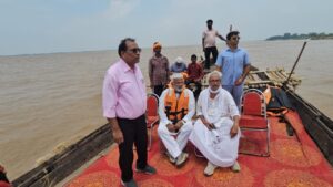 गाजीपुर। मंत्री उ0प्र0 सरकार स्वतंत्र देव सिंह का जनपद भ्रमण एंव बाढ एवं सिचाई सम्बन्धित जन चौपाल कार्यक्रम सम्पन्न हुआ। मंत्री जी ने जनपद गाजीपुर के ऐतिहासिक गांव शेरपुर के जलालपुर मौजा में बन रहे गंगा कटान को रोकने के लिए बोल्डर पैचिंक के कार्य एवं गंगा के बढ़ाव का स्थलीय निरीक्षण किया। उत्तर प्रदेश सरकार के मंत्री सिंचाई एवं जल संसाधन, बाढ नियंत्रण, परती भूमि विकास, लघु सिंचाई, नमामि गंगे एवं ग्रामीण जलापूर्ति विभाग उत्तर प्रदेश स्वतंत्र देव सिंह ने आज शेरपुर के जलालपुर मौजा में बन रहे गंगा कटान को रोकने के लिए बोल्डर पैचिंक कार्य स्थलीय निरीक्षण करते हुए सम्बन्धित अधिकारी को आवश्यक निर्देश दियंे। मा0 मंत्री जी ने नाव पर सवार होकर शेरपुर के निषाद बस्ती तक अवलोकन किया एवं मौके पर उपस्थित अधिशासी अभियंता एवं सम्बन्धित अधिकारियों को ऐतिहासिक गांव को बचाने के लिए सख्त निर्देश दिए। निरीक्षण से पूर्व मा0 मंत्री जी ने ‘‘एक पेड़ मॉ के नाम 2.0 वृक्षारोपण महाअभियान 2025 के अन्तर्गत गंगा तट पर रुद्राक्ष, बरगद एवं आम के पौधे का रोपण भी किया । चौपाल मे मंत्री जी ने वार्ता में बताया कि उत्तर प्रदेश सरकार पूरे प्रदेश में गंगा एवं अन्य नदियों में बाढ़ नियंत्रण के लिए बाढ़ नियंत्रण चौकिया बाढ़ शरणालय एवं अन्य विविध उपाय कर रही है जिससे आम जनमानस को गंगा एवं अन्य नदियों में बढ़ रहे जलस्तर से कठिनाइयों का सामना न करना पड़े। उन्होने अधिकारियों को इस सम्बन्ध सख्त हिदायत दी तथा कहा कि इसमे किसी स्तर की लापरवाही क्षम्य नही होगी। उन्होने अधिकारियेां को निर्देश दिया कि बाढ से प्रभावित होने वाले क्षेत्रो का पहले से ही भ्रमण करते हुए जहां भी जैसी स्थिति बने लोगो को राहत पहुचाने का कार्य किया जाये। मौके पर अपर जिलाधिकारी वि0रा0 दिनेश कुमार, अधिशासी अभियन्ता देवकली पम्प नहर कैनाल राजेन्द्र प्रसाद चौधरी, भाजपा नेता आदित्य सिंह, ग्राम प्रधान एवं आमजन उपस्थित थे।
