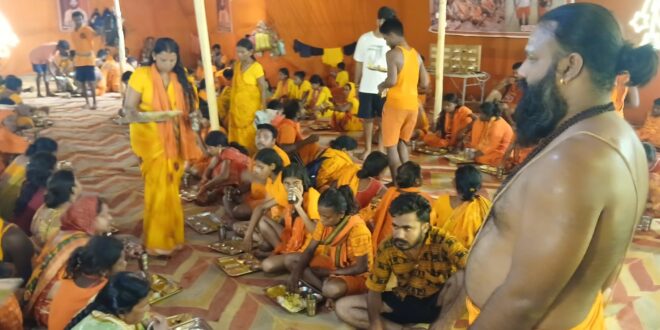 गाजीपुर। शिव सेवा भक्त मंडल मऊ व गाजीपुर के तत्वावधान में विगत हर साल कि भांति इस साल भी बाबा वैद्यनाथ जी कि नगरी देवघर झारखंड में कांवरिया पथ पर मंदिर से 5 किलोमीटर पहले आध्यात्मिक भवन के पास घोरमारा में विशाल सेवा शिविर व भंडारे का आयोजन चल रहा है। जिसमे प्रतिदिन हजारों भक्त भंडारे में प्रसाद ग्रहण कर रहे हैं। भंडारे में दंडी बम, डाक बम व बोल बम के लिए ठंडा पानी, गर्म पानी, नींबू चाय, शरबत, लीची का जूस,फलाहार व भोजन की निशुल्क सुविधा दी जा रही है। शिव सेवा भक्त मंडल ट्रस्ट के संस्थापक व संचालक अभिषेक सिंह मोनू ने बताया कि हमारे प्रभु बाबा भोलेनाथ व हमारे गुरु परम पूज्य स्वामी संत श्री अभिराम दास जी के आशीर्वाद से हमें यह बल प्राप्त हुआ है कि हम भक्तों की सेवा कर सकें। हम सभी के सहयोग से शिविर में सुबह चाय,नींबू शर्बत,जूस,दवा व आरो का ठंडा पानी सभी कांवरियों व डाक बम को नि:शुल्क सेवा दिया जाता है। साथ ही रात में विशाल भंडारे का आयोजन किया जाता है। वहीं संस्था के संरक्षक,त्रिशक्ति कंस्ट्रक्शन के मालिक व ग्राम तांती के प्रधान प्रत्यासी अजीत कुमार सिंह उर्फ सोनू सिंह ने कहां की हम अपने शिविर पर सभी कांवरियों का हार्दिक स्वागत व अभिनंदन करते हैं हमारे जनपद ही नहीं पूरे प्रदेश व देश से जो भी भक्त देवघर आना चाहते हैं वह हमारे यहां आकर हमें सेवा का अवसर प्रदान करें। इस ट्रस्ट के सहयोगी त्रिशक्ति टेंट हाउस के मलिक आशुतोष पांडेय, गाजीपुर पत्रकार एसोसिएशन के कार्यकारिणी सदस्य व पत्रकार रविकांत पांडेय व पंकज पांडेय, अनिल कुमार पांडेय, उमाशंकर चौरसीया, लोकगीत गायक गोपाल राय, रजनीश गुप्ता, भागवत गुप्ता, नवनीत जायसवाल, राजीव त्रिपाठी, संजय सिंह, अवनीश पांडेय, शेषनाथ सिंह, आलोक सिंह हरिओम, व सहयोगी संस्थान गाजीपुर पत्रकार एसोसिएशन सहित सैकड़ों लोग है।