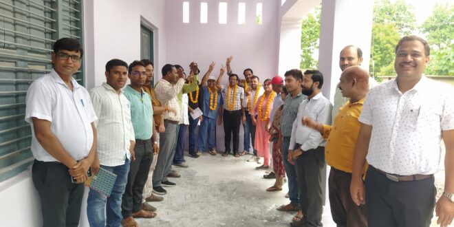 गाजीपुर! पी जी कालेज भुड़कुड़ा गाजीपुर के शिक्षक संघ का चुनाव चुनाव अधिकारी द्वय प्रो रमेश कुमार एवं प्रो शिवानन्द पान्डेय के निर्देशन में निर्विरोध एवं विधिसम्मत ढंग से समस्त शिक्षक गण की उपस्थिति में सम्पन्न हुआ! जिसमें अध्यक्ष प्रो सत्य प्रकाश जी , सन्तोष सिंह यादव, महामन्त्री डा सर्वेश्वर प्रताप सिंह, संयुक्त मन्त्री ( पुरुष) डा सौरभ मौर्या, संयुक्त मन्त्री ( महिला) जागृति गुप्ता एवं कोषाध्यक्ष डा धर्मेन्द्र यादव निर्विरोध चुने गये! अध्यक्ष चने जाने पर प्रो सत्य प्रकाश जी ने अपने सम्बोधन में कहा कि समस्त शिक्षक बन्धु का एक साथ बैठ कर निर्विरोध चुनाव समन्न करना आने वाले दिनों में महाविद्यालय के सुख समृद्धिमय विकास को प्रदर्शित करता है वही नवनिर्वाचित महामन्त्री डा सर्वेश्वर प्रताप सिंह ने सारगर्भित सम्बोधन करते हुए कहा कि शिक्षक हित के लिए नवनिर्वाचित शिक्षक संघ सदैव रचनात्मक ढंग से अग्रणी भूमिका का निर्वहन करेगा !! चुनाव अधिकारी द्वय प्रो रमेश कुमार एवं प्रो शिवानन्द पान्डेय ने निर्विरोध चुनाव सम्पन्न करने हेतु समस्त शिक्षक बन्धुओं के प्रति आभार ब्यक्त किया!