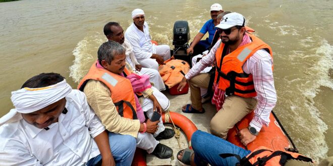 गाजीपुर: मुहम्मदाबाद के विधायक शोएब उर्फ मन्नू अंसारी ने गुरूवार को गंगा नदी के बाढ़ग्रस्त क्षेत्रों का दौरा कर ग्रामवासियो से मिलकर उनकी समस्याओ को सुना। मन्नू अंसारी ने ग्राम सभा नसीरपुर, वीरउरपुर, हसनपुरा, नगदीलपुर रेवतीपुर में बाढ़ पीडि़तो से मिले और कहा कि हमने जिला प्रशासन को राहत सामग्री मुहैया कराने के लिए कहा है, उन्होने कहा कि पशुओ के चारा और बिमार लोगो के इलाज के लिए हर संभव व्यवस्था उपलब्ध करायी जायेगी। उन्होने कहा कि बाढ का पानी उतरने के बाद जो समस्याएं उत्पन्न होगी उनके निराकरण के लिए भी प्रशासन को बताया गया।