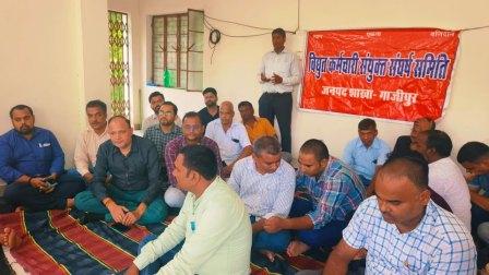 गाजीपुर। विद्युत कर्मचारी संयुक्त संघर्ष समिति उत्तर प्रदेश के आवाहन पर आज जनपद गाजीपुर में सर्किल ऑफिस लाल दरवाजा पर सायं 2 से 5:00 बजे तक अगस्त क्रांति 9 अगस्त 1942 की पूर्व संध्या पर” कॉर्पोरेट घरानो पावर सेक्टर छोड़ो”के तहत सभी विद्युत कर्मी जूनियर इंजीनियर और अभियंता इकट्ठा हुए। सभा को संबोधित करते हुए निर्भय नारायण सिंह पूर्वांचल अध्यक्ष विद्युत मजदूर पंचायत ने बताया कि बड़ी मुश्किल से हम सभी को आजादी मिली है। 9 अगस्त 1942 क्रांति दिवस को महात्मा गांधी ने नारा दिया था अंग्रेजों भारत छोड़ो। और आज पावर सेक्टर के कर्मचारी बिजली जैसे महत्वपूर्ण महकमे को निजीकरण किया जा रहा है, इसके विरोध में आज जनहित किसान हित जैसे महत्वपूर्ण मुद्दे पर कॉर्पोरेट घरानों वापस जाओ एवं कॉर्पोरेट घरानों पावर सेक्टर छोड़ो दिवस के रूप में मनाते हुए सरकार से निजीकरण वापस हेतु पुनर्विचार की मांग करते हुए निजीकरण वापस लेने की मांग की। सभा को संबोधित करते हुए जूनियर इंजीनियर संगठन के जिला अध्यक्ष मिथिलेश यादव ने कहा कि विद्युत कर्मी आखरी दम तक निजीकरण का विरोध करेंगे और निजीकरण नहीं होने देंगे। सभा में मुख्य रूप से इंद्रजीत पटेल, अमित शेखर सिंह, दीपक कुमार, मनोज पटेल, गजानंद चौधरी, तपस प्रसाद, रविंद्र सिंह, शशिकांत कुशवाहा, प्रमोद कुशवाहा, नरेंद्र यादव, प्रदीप राय, महेंद्र कुमार, सिकंदर रजा,जितेंद्र सिंह ,प्रवीण सिंह, अनुराग सिंह, भानु कुशवाहा, राकेश कुशवाहा, पंकज वर्मा, राकेश प्रभाकर, रविंद्र यादव, अरविंद यादव, नीलमणि यादव, कैलाश यादव, अखिलेश कुमार, प्रदीप कुमार, नौशाद खान, अश्वनी सिंह, चंद्रहास कुशवाहा, मनोज मौर्य, अशोक यादव आदि कर्मचारी उपस्थित रहे। संचालन अशोक कुशवाहा ने किया एवं अध्यक्षता अरविंद श्रीवास्तव ने किया।