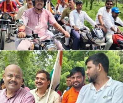 गाज़ीपुर। बिरनो ब्लॉक में रविवार को भव्य तिरंगा यात्रा का आयोजन किया गया। एमएलसी विशाल सिंह चंचल के नेतृत्व में ब्लाक प्रमुख राजन सिंह सहित सैकड़ा के तादात में बाइक सवार और कार सवार कार्यकर्ताओ ने भाग लिया। तिरंगा यात्रा के काफिले से पूरे क्षेत्र में देशभक्ति का जज्बा भर दिया। यात्रा की शुरुआत मंडल भोजापुर शक्ति केंद्र मलेठी से हुई, जहां भारत माता की जय और वंदे मातरम् के नारों के बीच पूरे माहौल में उत्साह छा गया। विधान परिषद सदस्य विशाल सिंह चंचल, ब्लॉक प्रमुख राजन सिंह की बुलेट पर सवार होकर तिरंगा यात्रा में शामिल हुए। रास्ते भर एमएलसी विशाल सिंह चंचल और ब्लॉक प्रमुख राजन सिंह ने युवाओं को देशभक्ति का संदेश देते रहे और लोगों से राष्ट्र निर्माण में सक्रिय भागीदारी की अपील की। बिरनो ब्लॉक परिसर में स्थित शहीद निरंजन राजभर और कारगिल शहीद कमलेश सिंह की आदमकद प्रतिमाओं पर माल्यार्पण कर उन्हें श्रद्धांजलि दी गई। श्रद्धांजलि कार्यक्रम ने देश के लिए अपने प्राण न्योछावर करने वाले शहीदों के प्रति सम्मान को और भी सशक्त किया। इस अवसर पर एमएलसी विशाल सिंह चंचल ने कहा कि, “देशभक्ति केवल एक भावना नहीं, बल्कि एक जिम्मेदारी है जिसे हर नागरिक को निभाना चाहिए। शहीदों के बलिदान को कभी भुलाया नहीं जा सकता और ऐसे आयोजनों से नई पीढ़ी को उनके संघर्षों से रूबरू कराया जा सकता है।”ब्लॉक प्रमुख राजन सिंह ने बताया कि यह तिरंगा यात्रा संगठन के निर्देशानुसार 15 अगस्त तक जिलेभर में चलाई जाएगी। उनका उद्देश्य युवाओं में राष्ट्रभक्ति की अलख जगाना और देश के प्रति कर्तव्यों के प्रति सजग करना है। उन्होंने कहा कि शहीदों के सम्मान और देशप्रेम की भावना को सुदृढ़ करने के लिए इस प्रकार के कार्यक्रम अत्यंत आवश्यक हैं। यात्रा में वरिष्ठ भाजपा नेता मनोज सिंह, प्रवीण सिंह, प्रियांशु सिंह सोनू, धनंजय प्रजापति, अभिमन्यु सिंह मन्नू, गुड्डू गुप्ता, प्रमोद प्रजापति, अनिल राजभर, ऋषिकेश कुशवाहा, तेज प्रताप सिंह, माखन सिंह, अमित सिंह और बिरनो थानाध्यक्ष बालेंद्र कुमार सहित भारी संख्या में स्थानीय नागरिक, कार्यकर्ता और युवा शामिल हुए।