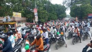गाजीपुर। ‘‘आजादी का अमृत महोत्सव‘‘ के अन्तर्गत ‘हर घर तिरंगा‘ कार्यक्रम के आयोजन को भव्य रूप से मनाये जाने हेतु तिरंगा बाईक रैली निकाली गयी। रैली को जिलाधिकारी अविनाश कुमार ने विकास भवन से हरी झण्डी दिखाकर रवाना किया। रैली की अगुवाई मुख्य विकास अधिकारी संतोष कुमार वैश्य ने खुद बाईक चलाकर की एवं जनपदवासियों को संदेश दिया की हर घर तिरंगा फहराकर जनपद को प्रथम स्थान लाना है। रैली विकास भवन से प्रारम्भ होकर सैनिक चौराहा (भूतहियाटाड), लंका, विशेश्वरगंज, महुआबाग, कलेक्ट्रेट, सिचाई विभाग चौराहा होते हुए विकास भवन आकर समाप्त हुयी। उन्होने कहा कि इसका उद्देश्य है कि जिले के समस्त नागरिकों में राष्ट्रप्रेम की भावना जागरूक करना। उन्होने संदेश दिया कि 13 अगस्त से 15 अगस्त तक हर घर, हर प्रतिष्ठान पर तिरंगा फहरायें, स्वंतत्रता दिवस मनायें एवं राष्ट्र प्रेम की भावना संयोग कर रखें। जिलाधिकारी ने कहा कि इस तरह की रैलीयां सभी तहसीलों, ब्लाकों पर भी निकाली गयी है, और निरंतर 14 व 15 तक निकाली जायेंगी। रैली हर गॉव में बच्चे और गॉव के लोग तिरंगा लेकर निकालेंगे। स्वतंत्रता दिवस के अवसर पर हर घर तिरंगा अभियान के तहत लोगो में जागरूकता एवं सामाजिक सौहार्दय, आपसी सदभाव की भावना के साथ तिरंगा बाइक रैली का आयोजन किया गया है, और इसका उद्देश्य है कि समस्त जनपदवासी हर घर तिरंगा अभियान में जोर शोर से प्रतिभाग करें। हर घर तिरंगा अभियान में स्वयं सहायता समूह के माध्यम से तिरंगा का निर्माण किया जा रहा है जो लोगो को वितरित किया जायेगा और लोगो को जागरूक करते हुए सभी लोगो को अपने घरों पर तिरंगा लगाने के लिए प्रचार- प्रसार किया जा रहा है। उन्होने समस्त जनपदवासीयों से अपील किया है कि स्वतंत्रता दिवस के अवसर पर हर घर तिरंगा अभियान में जोर-शोर से प्रतिभाग करें और सभी लोगो के बीच आपसी सौहार्दय बना रहें। उन्होने कहा कि इस रैली से लोगो संदेश देना है कि स्वतंत्रता दिवस के अवसर पर तिरंगा पर नाज करते हुए अपने घर पर तिरंगा लगाकर तिरंगे के साथ सेल्फी लेकर हर घर तिरंगा डाट काम पर अपनी सेल्फी जरूर अपलोड करें। रैली में उप जिलाधिकारी सदर मनोज पाठक, जिला विकास अधिकारी सुभाष चन्द्र सरोज, क्षेत्राधिकारी सदर, बेसिक शिक्षा अधिकारी, जिला सूचना अधिकारी राकेश कुमार, विद्यालयो के अध्यापक एवं अन्य जनपद स्तरीय अधिकारी एवं कर्मचारी ने बाईक चलाकर प्रतिभाग किया।