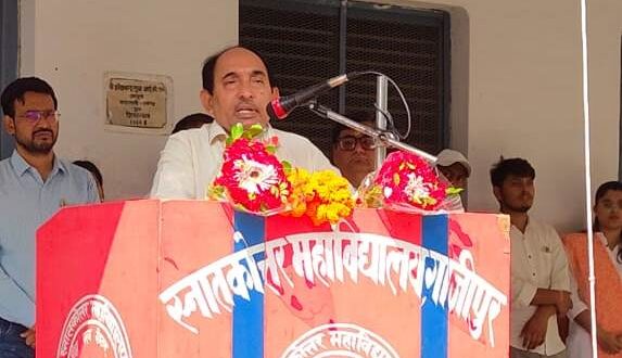 गाजीपुर। स्नातकोत्तर महाविद्यालय, गाजीपुर में 79 वां स्वतंत्रता दिवस हर्षोल्लास के साथ मनाया गया। इस अवसर पर प्राचार्य प्रोफ० (डॉ०) राघवेन्द्र कुमार पाण्डेय ने एनसीसी की थल सेना और जल सेना इकाई का निरीक्षण किया और परेड की सलामी के उपरान्त राष्ट्रीय ध्वज तिरंगा का ध्वजारोहण किया। प्राचार्य की मौजूदगी में उच्च शिक्षा निदेशक के संदेश का वाचन किया गया, जिसमें स्वतंत्रता के महत्व और देश के प्रति कर्तव्यों पर जोर दिया गया। कार्यक्रम का संचालन हिंदी विभाग के अध्यक्ष प्रोफेसर विनय कुमार दुबे ने कुशलतापूर्वक किया। प्राचार्य प्रोफेसर राघवेन्द्र कुमार पाण्डेय ने अपने संबोधन में स्वतंत्रता संग्राम के बलिदानियों को श्रद्धांजलि दी और युवाओं से राष्ट्र निर्माण में सक्रिय योगदान देने का आह्वान किया। उन्होंने कहा कि स्वतंत्रता केवल अधिकार नहीं, बल्कि जिम्मेदारी भी है। भारत आज विश्व की चौथी अर्थव्यवस्था बन गया है और शीघ्रता से तीसरी अर्थव्यवस्था की ओर तेजी से आगे बढ़ रहा है। हमें शिक्षा, नवाचार , शोध और अनुशासन के माध्यम से देश को समृद्ध और शक्तिशाली बनाना होगा। प्राचार्य प्रोफेसर पाण्डेय ने कहा कि भारत विश्व का सबसे बड़ा युवा देश है और भारत अपने युवाओं के परिश्रम, उत्साह, ज्ञान एवं शोध के बल पर नया भारत समृद्ध, आत्मनिर्भर एवं विकसित भारत बनेगा। उन्होंने एनसीसी कैडेट्स की अनुशासित प्रस्तुति की सराहना की। इसके साथ ही उन्हें देशभक्ति की भावना को मजबूत करने के लिए प्रेरित किया। इस अवसर पर महाविद्यालय के समस्त शिक्षक, कर्मचारी और छात्र-छात्राएं उपस्थित रहे। एनसीसी कैडेट्स ने परेड और सांस्कृतिक कार्यक्रमों के माध्यम से देशभक्ति का उत्साहपूर्ण प्रदर्शन किया। कॉलेज परिसर को तिरंगे और रंग-बिरंगे गुब्बारों और झालरों से सजाया गया था। जिसने उत्सव का माहौल और आकर्षक बना दिया। कार्यक्रम के अंत में सभी ने राष्ट्रगान गाया और मिठाइयां बांटकर खुशी साझा की। यह आयोजन स्वतंत्रता के गौरव और एकता का प्रतीक बना।