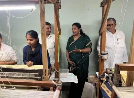 गाज़ीपुर। नन्दगंज क्षेत्र के इमिलिया पहलवानपुर व इंड्रस्टीयल स्टेट नन्दगंज में डा० एम० बीना अतिरिक्त सचिव एवं विकास आयुक्त एवंम अपर आयुक्त स्वयं प्रभा पाणी (हथकरघा) वस्त्र मंत्रालय भारत सरकार ने हैण्डलूम बीवर प्रोड्यूसर कम्पनी द्वारा संचालित लूम शेड का निरीक्षण किया। इस अवसर पर विकास आयुक्त ने क्षेत्र में विलुप्त होती जामदानी तकनीकी की बुनाई महिलाओं द्वारा करते हुए देख कर सराहना की। इस अवसर पर उन्होने इमिलिया पहलवानपुर, नन्दगंज में भारत सरकार द्वारा प्रस्तावित कलस्टर का भी निरीक्षण किया एवं निरीक्षण के दौरान निर्देशित किया कि प्रस्तावित कामन वर्कशेड सभी तरह की अत्याधुनिक सुविधाओं से लैस हो ,जिससे और अधिक संख्या में युवा तथा महिलाएं बुनकर हथकरघा के प्रति आकर्शित हो और विश्व स्तर स्तर की अवधी जामदानी की बुनाई की जाय और देश विदेश में जिले का नाम रोशन हो। इस अवसर पर विकास आयुक्त वस्त्र मंत्रालय भारत सरकार द्वारा समर्थ ट्रेनिंग प्राप्त लाभार्थियों को प्रमाण पत्र भी वितरित किया। कार्यक्रम के दौरान अकबर हुसैन द्वारा विकास आयुक्त का स्वागत किया गया तथा उनके द्वारा बताया गया कि गाजीपुर जिले में प्रथम बार भारत सरकार के (हथकरघा) के सर्वोच्च अधिकारी द्वारा भ्रमण किया गया है।जिससे क्षेत्र के बुनकरों में अति उत्साह दिखा। इस अवसर पर उपायुक्त प्रवीण कुमार मौर्य जिला उद्योग केन्द्र गाजीपुर सहायक आयुक्तअरविंद कुमार सिंह हथकरघा मऊ परिक्षेत्र, वस्त्र निरीक्षक नवीन कुमार राय तथा भारत सरकार के बुनकर सेवा केन्द्र वाराणसी सहायक निदेशक ऋषिकेश देसाई व राष्टीय हथकरघा विकास निगम के वरिष्ठ प्रबन्धक आशीष कुमार सिंह तथा गणमान्य नागरिक व बुनकर उपस्थित थे।