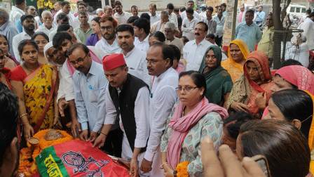गाजीपुर। समाजवादी पार्टी के संस्थापक सदस्य, पूर्व विधान परिषद सदस्य, कोआपरेटिव बैंक के पूर्व चेयरमैन बच्चा यादव जी (बच्चा बाबू) का निधन हो गया है। उनके निधन से समाजवादी पार्टी ने अपना एक महान सपूत खो दिया है। उनके निधन की खबर फैलते ही जनपद का सियासी जगत शोक में डूब गया। खबर पाते ही लोगों का उनके चूंगी स्थित आवास पर पहुंचने का सिलसिला शुरू हो गया। समाजवादी पार्टी एवं उनके समर्थकों एवं शुभचिंतकों की भारी भीड़ उनके आवास पर जुट गयी। उनके शवयात्रा आरंभ होने से पूर्व जिलाध्यक्ष गोपाल यादव ने उनके आवास पर उनके शव पर पार्टी का झंडा समर्पित कर श्रृद्धांजलि अर्पित किया। जिला प्रशासन की तरफ से सम्मान प्रकट करते हुए तहसीलदार सदर राजीव यादव ने भी पुष्पांजलि अर्पित कर श्रद्धांजलि दी। उनकी शवयात्रा पार्टी कार्यालय समता भवन पर पहुंचने पर जिलाध्यक्ष गोपाल यादव सहित सैकड़ों कार्यकर्ताओं ने पुष्पांजलि अर्पित कर भावभीनी श्रद्धांजलि अर्पित किया। जिलाध्यक्ष गोपाल यादव ने शोक व्यक्त करते हुए कहा कि आज समाजवादी पार्टी ने अपना एक महान सपूत को दिया है। वह बहुत ही सहज,सरल, सादगी, समर्पण एवं ईमानदारी की प्रतिमूर्ति थे। वह किसानों, नौजवानों और आमजन में काफी लोकप्रिय थे। इस जनपद में जब जब ईमानदारी और कर्तव्यनिष्ठ नेता की चर्चा होगी बच्चा बाबू याद किये जायेंगे। पूर्व विधायक उमाशंकर कुशवाहा ने उन्हें श्रद्धांजलि अर्पित करते हुए नेक दिल इंसान और संघर्षों का साथी बताया। उन्होंने कहा कि वह अपने संघर्षों की बदौलत एक गरीब परिवार से उठकर राजनीति के इस मुकाम तक पहुंचे थे। उनके निधन से समाजवादी परिवार ने अपना एक महान नेता को दिया है। जिसकी भरपाई निकट भविष्य में संभव नहीं है। पार्टी कार्यालय समता भवन पर पूर्व एमएलसी विजय यादव, पूर्व विधायक खुर्शीद अहमद, पूर्व विधायक त्रिवेणी राम,पूर्व जिलाध्यक्ष सुदर्शन यादव,पुर्व जिलाध्यक्ष रामधारी यादव, मुहम्मदाबाद नगर पालिका परिषद के चेयरमैन रईस अहमद, अरूण कुमार श्रीवास्तव, कन्हैयालाल विश्वकर्मा,नुसरत अंसारी , शम्भू अकेला,डॉ सीमा यादव,शौर्या सिंह, संतोष यादव,अमित ठाकुर, कमलेश यादव,सुशील जायसवाल,विभा पाल, भानु यादव,राजेन्द्र यादव,सदानंद यादव, सुनील यादव,वंशबहादुर कुशवाहा, रामाशीष यादव,सुग्गु यादव, रीता विश्वकर्मा, दिनेश सरकार,अनिता यादव, धन्नो यादव, सुनीता यादव, राजनाथ कुशवाहा, अंजनी यादव गौरव, शेर अली राईन,कमलेश लाला, अनिल राय, आदित्य यादव, राहुल सिंह,द्वारिका प्रसाद यादव आदि उपस्थित थे।