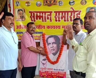 गाजीपुर। अखिल भारतीय कायस्थ महासभा गाजीपुर के तत्वावधान में महासभा के जिलाध्यक्ष अरूण कुमार श्रीवास्तव के चंदन नगर स्थित आवास पर मशहूर शायर रघुपति सहाय फिराक गोरखपुरी की जयंती पर माल्यार्पण कार्यक्रम एवं विचार गोष्ठी आयोजित हुई। गोष्ठी आरंभ होने के पुर्व महासभा के सभी कार्यकर्ताओं ने उनके चित्र पर माल्यार्पण कर उन्हें श्रद्धांजलि अर्पित करते हुए देश की गंगा जमुनी तहजीब और साम्प्रदायिक और सामाजिक सद्भाव की रक्षा करने का संकल्प लिया। महासभा के जिलाध्यक्ष अरूण कुमार श्रीवास्तव ने गोष्ठी में अपने विचार रखते हुए उनके व्यक्तित्व एवं कृतित्व की चर्चा की और कहा फिराक उर्दू साहित्य के विद्वान और मशहूर शायर ही नहीं बल्कि महान स्वतंत्रता सेनानी थे। वह स्नातक करने के बाद पीसीएस हो गये थे लेकिन गांधी जी का एक भाषण सुनने के बाद उन्होंने अपनी नौकरी छोड़ दी और स्वतंत्रता संग्राम में कूद पड़े।उनका नाम हिंदी और उर्दू साहित्यकारों के बीच बड़े अदब के साथ लिया जाता है। उन्हें साहित्य अकादमी और पद्म श्री से भी नवाजा गया था। इस संगोष्ठी में मुख्य रूप से अमरनाथ श्रीवास्तव, मनीष श्रीवास्तव,सुभांशु श्रीवास्तव, अनूप श्रीवास्तव, अश्वनी श्रीवास्तव, माधुरी श्रीवास्तव आर्यन, हिमांशु, हर्ष, प्रियांशु आदि मौजूद थे। इस संगोष्ठी का संचालन जिला महामंत्री अरूण सहाय ने किया।