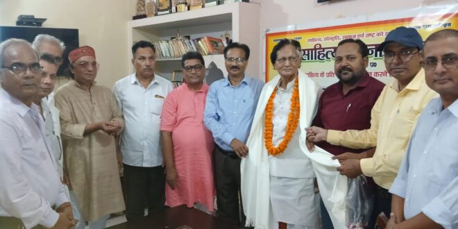 गाजीपुर। साहित्य चेतना समाज’ के तत्वावधान में ‘चेतना – प्रवाह’ कार्यक्रम के अन्तर्गत देश के ख्यात मंच-संचालक, ‘गाजीपुर गौरव सम्मान’ से सम्मानित कवि हरिनारायण ‘हरीश’ के तिलक नगर काॅलोनी स्थित आवास पर उनके 80 वें जन्मदिवस के अवसर पर एक ‘सरस काव्यगोष्ठी’ का आयोजन किया गया। कार्यक्रम का शुभारम्भ समस्त कवियों के द्वारा मा वीणापाणि के चरणों में दीप-प्रज्वलन एवं पुष्पार्चन के उपरान्त संजय पाण्डेय की वाणी-वंदना से हुआ। इसके पश्चात हरीश जी को माल्यार्पण कर एवं अंगवस्त्रम् प्रदान कर सम्मानित किया गया।तदुपरान्त संजय पाण्डेय एवं प्रभाकर त्रिपाठी ने अपने सांगीतिक अनुगायन के द्वारा इस अवसर को और सुन्दर बना दिया। युवा नवगीतकार डॉ.अक्षय पाण्डेय ने कवि के 80वें जन्मदिन पर शताब्दी साहित्यकार बनने की मंगलकामना के साथ स्नेहिल बधाई दी। अपने वक्तव्य में हरीश जी के अवदान को रेखांकित करते हुए कहा कि “यदि डॉ.पी.एन.सिंह ने अपने समय-समाज को अकादमिक-संस्कार दिया है तो कवि हरीश ने अपने उत्कृष्ट संचालन के द्वारा भारतीय मंचों को एक श्रेष्ठ काव्यात्मक-संस्कार दिया है।” इसी के साथ ही डाॅ.पाण्डेय ने अपना नवगीत-“यति गति तुक ताल छन्द, गेयता गठन/अर्थों की अन्वितिया, शब्द का चयन/मेरे चिन्तन सारे भाव यही हैं/कविता हैं अम्मा, उन्वान हैं पिता” सुनाकर खूब वाहवाही अर्जित किया। युवा कवि प्रभात रघुवंशी ने अपनी ग़ज़ल “हद से ज्यादा भरोसा हो ख़ुद पर जिन्हें/ऐसे लोगों का कोई भरोसा नहीं” सुनाकर खूब वाहवाही लूटी। युवा व्यंग्य-कवि आशुतोष श्रीवास्तव ने”मेरे घर में सभी लायक थे/सो पढ़-लिख सभी विदेश चले गए/घर में मैं ही नालायक था/सो बूढ़े मा-बाप मेरे हिस्से आ गए”प्रस्तुत कर सोचने पर बाध्य किया।युवा ग़ज़लगो गोपाल गौरव ने अपनी ग़ज़ल -“पूनम का सुधाकर तेरे घर बरसे सुधारस/दिन जन्म मुबारक हो, दिन जन्म मुबारक” सुनाकर अतीव प्रशंसा अर्जित की। भोजपुरी-हिन्दी के श्रेष्ठ गीतकार हरिशंकर पाण्डेय ने अपना गीत “तेरे जन्मदिन पर हैं सबकी दुआऍं/रहें खुश सदा,अब कोई ग़म न आए” के द्वारा अपनी सस्वर मंगलकामनाऍं दी। ‘साहित्य चेतना समाज’ के संस्थापक अमरनाथ तिवारी ‘अमर’ ने हरीश जी को जन्मदिन की अकूत बधाई देते हुए कहा कि -“अपनी कविताओं के द्वारा यशार्जन के साथ ही आदरणीय हरीश जी ने हिन्दी-कवि-मंंचों को संचालक के रूप में एक सात्विक संस्कार दिया। हमारी संस्था, हरीश जी जैसे महनीय साहित्यिक व्यक्तित्व को ‘गाजीपुर गौरव सम्मान’ प्रदान कर स्वयं गौरवान्वित हुई।” साथ ही अपनी व्यंग्य कविता -“बनकर रहना अपने पति के चरणों की दासी/घर को बनाना स्वर्गऔर घर वालों को स्वर्गवासी”सुनाकर श्रोताओं को ताली बजाने के लिए मजबूर कर दिया। नगर के वरिष्ठ कवि,वीरर