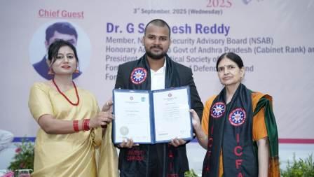 गाजीपुर। बिरनों थाना क्षेत्र के रसुलपुर तिलेसड़ा निवासी अमेरिका सिंह यादव संस्थापक श्री काशीनाथ ग्रुप ऑफ कालेज तिलेसड़ा के बड़े सुपुत्र गोलू यादव ने देहरादून के इक्फाई विवि में श्रेष्ठ प्रदर्शन कर परास्नातक उपाधि हासिल की है, इससे क्षेत्र में खुशी की लहर है। गोलू ने बताया कि कहा कि आज का दौर बदलते भारत का दौर है, हम बहुत तेजी से विकासशील राष्ट्र से विकसित राष्ट्र की ओर अग्रसर हो रहे है। उन्होंने डा कलाम के कथन का विवरण देते हुये कहा कि छात्र अपने जीवन में बड़ा तभी कर सकता है, जब वह अपने लक्ष्य बड़े निर्धारित करेंगे, गोलू ने अपने इस सफलता का श्रेय अपने माता पिता व गुरू को दिया है। दीक्षांत समारोह में मौजूद विवि के चांसलर डा० उदय बी देसाई ने मुख्य अतिथि डा० जी सथीश रेड्डी को स्मृति चिन्ह भेंटकर सम्मानित किया।