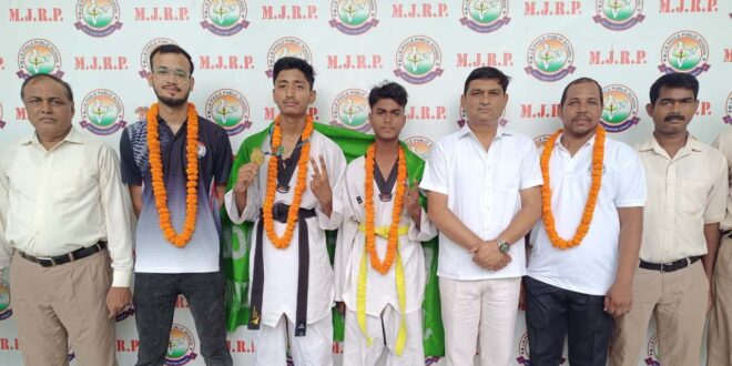 गाजीपुर। सी0बी0एस0ई0 बोर्ड द्वारा आयोजित नेशनल ताइक्वांडो चैम्पियनशिप 2025 में ग्यारहवीं का छात्र एहतेशाम कमाल ने स्वर्ण पदक प्राप्त कर विद्यालय के साथ पूरे जनपद को गौरवान्वित किया है। इस उपलब्धि पर दिनांक 9/09/2025 को महात्मा ज्योतिराव फूले पब्लिक स्कूल जगदीशपुरम गाजीपुर में सम्मान समारोह का आयोजन किया गया। यह नेशलन ताइक्वांडो चैम्पियनशिप 2025 अनीव पब्लिक स्कूल इटावा में दिनांक 03 सितम्बर से 7 सितम्बर 2025 के बीच खेला गया जिसमंे कड़ा मुकाबलो करते हुए एहतेशाम कमाल ने स्वर्ण पदक प्राप्त किया साथ स्कूल गेम्स फेडरेशन आॅफ इण्डिया के लिए चयनित हुआ। यह प्रतियोगिता नवम्बर माह में जम्मू में आयोजित होगी। इस सम्मान समारोह में विद्यालय के प्रबंधक मा0 राजेश कुशवाहा ने एहतेशाम कमाल का माल्यार्पण कर सम्मान किया और उसके इस उपलब्धि के लिए बधाई देते हुए उसके उज्ज्वल भविष्य की कामना की एवं ताइक्वांडो के कोच अब्दुल मलिक खान का सम्मान करते हुए उनके योगदान की सराहना की। इस अवसर पर विद्यालय के प्रधानाचार्य श्री सुदर्शन सिंह कुशवाहा, उपप्रधानाचार्य श्री राकेश पाण्डेय, वरिष्ठ खेल शिक्षक दिनकर सिंह, मुकेश कुमार, आशुतोष मिश्रा , सुरेश प्रसाद चैरसिया, हरि कुशवाहा, संजीव अग्रहरी, अनुपमा वर्मा, कृष्णानंद तिवारी, दीपक कुशवाहा, बसंत शर्मा, राजनारायण कुशवाहा, डाॅ0 दीपिका, संतोष मिश्रा एवं समस्त शिक्षकगण , अभिभावक एवं छात्र उपस्थित रहे।