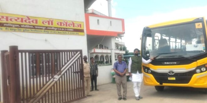 गाजीपुर। मिशन शक्ति के अंतर्गत पीएम मोदी और सीएम योगी से प्रेरणा लेकर सत्यदेव ग्रुप आफ कालेजेज के चेयरमैन डा. सानंद सिंह ने छात्राओं के आने-जान के लिए नि:शुल्क बस सुविधा उपलब्ध करायी है। इसके लिए उन्होने दो लग्जरी बसों को तत्काल खरीद कर ग्रामीण अंचल के छात्राओं के लिए निशुल्क बस सुविधा उपलब्ध करायी है। जब डा. सानंद सिंह को यह सूचना मिली कि ग्रामीण अंचल के छात्राओं को आने-जाने में दिक्कत हो रही है और प्राइवेट वाहनों से आने-जाने से उन्हे असुरक्षा का भावना पैदा हो रही है तो उन्होने यह निर्णय लिया। इस संदर्भ में डा. सानंद सिंह ने बताया कि माता दुर्गा भवानी का आशीर्वाद है की सत्यदेव डिग्री कॉलेज गाजीपुर को नई बस सत्यदेव डिग्री कॉलेज को मिली है। नवली , उतरौली,रेवतीपुर, पकड़ी देडगावा , सुहवल,मेदनीपुर, मां गंगा को पार करते हुए गाजीपुर घाट होकर के सत्यदेव डिग्री कॉलेज तक आएगी। नौली उतरौली रेवतीपुर से चलकर के सत्यदेव डिग्री तक आने में जितने स्थान की बेटियों को आना होगा। यह मुफ्त में आती रहेगी और जाती रहेगी। छात्राओं/बेटियों को लेकर के सत्यदेव डिग्री कॉलेज गाजीपुर आएगी। और पढ़ाई के बाद जब छुट्टी होगी तो उनके घरों तक पहुंचा देगी। यह बस सेवा एक तरह से निशुल्क है।