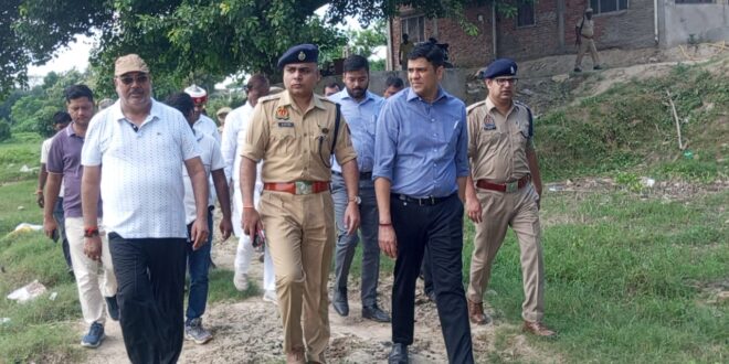 गाजीपुर। दशहरा दीपावली त्यौहारो को सकुशल तथा शांतिपूर्ण ढंग से मनाये जाने हेतु जिलाधिकारी अविनाश कुमार एवं पुलिस अधीक्षक डॉ0 ईरज राजा ने दशहरा के शुभ अवसर पर मूर्ति विसर्जन हेतु चिन्हित स्थानो का स्थलीय निरीक्षण किया। जिसमें बनाये गये रजागंज मूर्ति विसर्जन स्थल का जायजा लिया एवं सम्बन्धित अधिकारी को आवश्यक दिश निर्देशित देते हुए कहा कि पूर्व में जिन स्थानो पर व जिस तरह से मूर्ति विसर्जित की गयी थी उसी प्रकार से मूर्ति विसर्जन किया जायेगा कोई स्थान परिवर्तन होगा। मूर्ति विसर्जन के समय ग्रामीणो/शहरो के मूर्ति विसर्जन का समय निर्धारित के अनुसार ही विर्सजित किया जायेगा। कोई भी मूर्ति नालो, नहरो तथा गंगा नदी में नही करेगा। अध्यक्ष नगर पालिका गाजीपुर सरिता अग्रवाल, उपजिलाधिकारी सदर, क्षेत्राधिकारी सदर, अधिशासी अधिकारी नगर पालिका गाजीपुर एवं सम्बन्धित अधिकारी कर्मचारीगण उपस्थित रहे।