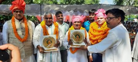 गाजीपुर। स्वतंत्रता आन्दोलन के महान योध्दा व पूर्व ब्लाक प्रमुख स्व० रामधारी पहलवान के 19 वीं पुण्य तिथि पर ब्लाक मुख्यालय के समीप विराट कुश्ती दंगल आयोजित किया गया। कुश्ती दंगल का उदघाटन मुख्य अतिथि ट्रिपल महाराष्ट्र केशरी नरसिह पहलवान ने भारत केशरी रामेश्वर पहलवान व दिल्ली केशरी आशिफ पहलवान के बीच हाथ मिलाकर शरुआत किया। इस कुश्ती पर 115000 एक लाख पन्द्रह हजार रूपया इनाम रखा गया जो बराबरी पर छुटी पूरॆ दंगल मे आकर्षण का केन्द्र बना रहा ।गाजीपुर केशरी उदयबीर पहलवान ने राजू पहलवान दिल्ली , विशाल पहलवान अंध ऊ ने जस्सा पहलवान पंजाब को संघर्ष के पराजित किया। इसके अलावा शाकिर नूर पहलवान मेरठ व राहूल पहलवान , शत्रुधन पहलवान म ऊ व देवेन्द्र पहलवान भुजाङी , सतपाल पहलवान म ऊ व गॊरव पहलवान जॊनपुर के बीच कुश्ती बराबरी पर छुटी।इसके अलावा दर्जनो कुश्ती 10 से 40 हजार के बीच हुई। कुश्ती दंगल मे विशिष्ठ अतिथि के रूप मे अर्तराष्ट्रीय पहलवान फ्रीडम पहलवान,अर्तराष्ट्रीय पहलवान रामप्रवेश उर्फ साधू यादव , सपा के प्रतिपक्ष नेता लालबहादुर यादव,पूर्व विधायक लालता चॊधरी,सदर विधायक जय किशुन साहू,ब्लाक प्रमुख माधुरी यादव ,महाराष्ट्र केशरी नरसिंह यादव मॊजूद थे।इस अवसर पर प्रधान संघ के ब्लाक अध्यक्ष फेकन यादव,कन्हॆया यादव,देवनाथ कुशवाहा,सदानंद यादव,मोनू यादव,विनय यादव,सुजीत यादव,रामधारी यादव,जोखन यादव, छोटेलाल यादव,सतेन्द्र यादव सत्या,देवेन्द्र यादव टिंकू ,राणा यादव,पप्पू यादव,भूपेन्द्र यादव,राजेश यादव, अशोक यादव आदि लोग प्रमुख रुप से मॊजूद थे।अंत के कुश्ती दंगल के आयोजक सच्चेलाल यादव व ब्लाक प्रमुख प्रतिनिधि उपेन्द्रलाल यादव ने आये हुए लोगो का स्वागत करते हुए सहयोगियो के प्रति आभार ब्यक्त किया।
