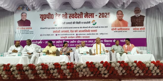 गाजीपुर। यूपी ट्रेड शो स्वदेशी मेला 2025 स्वदेशी उत्पादों को बिक्री व प्रदर्शनी का आयोजन लंका मैदान गाजीपुर में राज्य सभा सांसद डॉ संगीता बलवंत एवं नगर पालिका परिषद सरिता अग्रवाल एवं जिलाध्यक्ष भाजपा ओम प्रकाश राय की उपस्थिति में सर्वप्रथम प्रदर्शनी का अवलोकन किया गया उसके उपरांत राज्यसभा सांसद डॉक्टर संगीता बलवंत द्वारा दीप प्रजलन कर कार्यक्रम का शुभारंभ किया गया। कार्यक्रम का शुभारंभ के उपरांत जी जी आई सी गर्ल्स कॉलेज के बालिकाओं द्वारा स्वागत गीत के माध्यम से कार्यक्रम संपन्न किया गया उसके उपरांत राकेश कुमार द्वारा उपस्थित अतिथियों का स्वागत गीत प्रस्तुत कर कार्यक्रम को मनमोहक एवं रोचक बनाया। स्वदेशी अपनाएं देश को आत्मनिर्भर बनाएं कार्यक्रम उपयुक्त उद्योग जिला उद्योग प्रसारण तथा उद्यमिता विकास केंद्र द्वारा किया गया।यू पी ट्रेड शो स्वदेशी मेला 2025 मे लगाए गए प्रदर्शनी/ मेला में अवलोकन के समय माननीय राज्यसभा सांसद द्वारा दो साड़ी ₹1500 के धनराशि देकर वितरण किया। और उन्होंने कहा कि आगे भी इसी तरह के स्टाइल लगाया जाए जिससे लोगों को जागरूक हो सके एवं मेरा उत्तर प्रदेश स्वदेशी देश आत्मनिर्भर देश बन सके ।सांसद राज्यसभा कार्यक्रम में स्वागत समारोह के उपरांत राम जैविक हर्बल अमौरा द्वारा रंग बहादुर जी द्वारा राज्यसभा सांसद जी को एक पौधे देकर कार्यक्रम को आगे बढ़ाया गया।