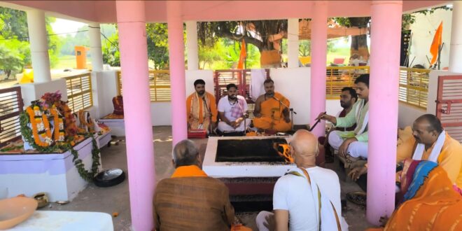 गाजीपुर। जनपद के नौली स्थित श्री रुद्राम्बिका धाम परिसर में चल रहे रुद्राम्बिका महायज्ञ के अंतर्गत काशी से पधारे वैदिक विद्वान यज्ञाचार्य डॉक्टर धनंजय पांडे के नेतृत्व में भगवान रुद्र तथा भगवती अंबिका का वैदिक मंत्रों से स्वाहाकार हुआ। वैदिक मंत्रों के गूंज से पूरा वातावरण मंत्रमय में रहा। इस मौके पर यज्ञाचार्य पंडित डॉ धनंजय पांडे ने बताया कि श्रुतियों में यज्ञ को ही विष्णु कहा गया है। कुबुद्धि, कुविचार ,दुर्गुण एवं दुष्कर्मों से विकृत मनोभूमि में यज्ञ से भारी सुधार होता है। इसलिए यज्ञ को पाप नाशक कहा गया है। यज्ञीय प्रभाव से सुसंस्कृत हुई विवेकपूर्ण मनोभूमि का प्रतिफल जीवन के प्रत्येक क्षण को स्वर्गीय आनंद से भर देता है, इसलिए यज्ञ को स्वर्ग देने वाला भी कहा गया है। क्षेत्र के गणमान्य गण तथा भारी संख्या में महिला श्रद्धालुओं ने यज्ञ मंडप की परिक्रमा की। अपराह्न में प्रयागराज से पधारे परम पूज्य जीयर स्वामी जी के कृपा पात्र शिष्य विजय कौशिक जी ने भक्त जनों को मर्यादा पुरुषोत्तम प्रभु श्री राम के दिव्य चरित्र की कथा सुनाई। इस अवसर पर आसपास के कई गांव के श्रद्धालु गण उपस्थित रहे। मुख्य रूप से विद्यानंद सिंह, मुन्ना पांडे, वंश नारायण तिवारी, साधु जी, चौरसिया जी तथा कई गणमान्य लोग उपस्थित रहे।