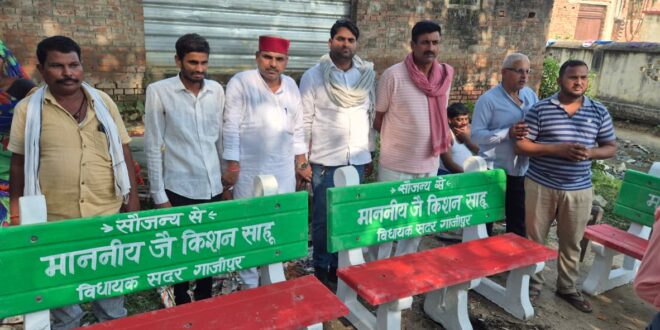 गाजीपुर। चोचकपुर श्मशान घाट पर विधायक जै किशन साहू द्वारा अंतिम यात्रा में शामिल होने वाले परिजनों के लिए बैंच और कुर्सी लगवाकर सराहनीय कार्य किया गया है। क्षेत्रवासियों का कहना है कि विधायक जै किशन साहू ने पवित्र स्थान पर बैठने की उचित व्यवस्था करवाकर नेक कार्य किया है। उन्होंने कहा कि इस तरह का कार्य करने वाले पहले विधायक साहू हैं। जल्द ही विधायक द्वारा 8 बाई 8 का विश्राम घर भी बनवाया जाएगा, जिसकी मंजूरी मिल चुकी है। इस अवसर पर जिला पंचायत सदस्य व यादव महासभा के युवा जिलाध्यक्ष दिवेन्द्र यादव टिंकू, सैनिक प्रकोष्ठ के महामंत्री सुरेंद्र, बलिस्टर यादव , ठिकेदार राकेश यादव , गोलू , समाजसेवी रामसहाय बिन्द , संदीप पाल , अजय यादव पुस्सू , गोसाई रमेश यादव आदि उपस्थित होकर विधायक की प्रशंसा करते हुए आभार प्रगट किया।