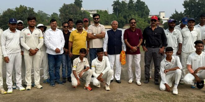 गाजीपुर डिस्ट्रिक्ट क्रिकेट एसोसिएशन (सबद्ध – उत्तर प्रदेश क्रिकेट एसोसिएशन) के तत्वाधान में गाजीपुर के स्थानीय स्वामी सहजानंद स्नातकोत्तर महाविद्यालय गाजीपुर के जीडीसीए मैदान पर गाजीपुर डिस्ट्रिक्ट क्रिकेट लीग 2025 टूर्नामेंट का श्रीगणेश हुआ | पूर्व निर्धारित कार्यक्रम के अनुसार टूर्नामेंट का उद्घाटन स्वामी सहजानंद स्नातकोत्तर महाविद्यालय के पूर्व सचिव कविन्द्र नाथ शर्मा के कर-कमलो द्वारा फीता काटकर किया गया | आज टूर्नामेंट का पहला मैच आज सीपीसी – येलो तथा अजंता – ए के बीच खेला गया | मैच के पूर्व मुख्य अतिथि तथा गाजीपुर डिस्ट्रिक्ट क्रिकेट एसोसिएशन के चेयरमैन संजीव कुमार सिंह, गाजीपुर डिस्ट्रिक्ट क्रिकेट एसोसिएशन के अध्यक्ष शाश्वत सिंह तथा ने सभी खिलाडियों का परिचय प्राप्त किया | मैच के पूर्व आज के मैच के दोनों अंपायर स्मृति एवं सौरभ ने रंजन सिंह के साथ पिच का निरिक्षण किया | आज के पहले मैच में अजंता -ए टॉस जीतकर पहले बल्लेबाजी करने का निर्णय लिया | पहले बल्लेबाजी करते हुए अजंता -ए की टीम ने अमित यादव के शतकीय पारी (75 गेंद पर 134 रन) तथा आदित्य सिंह के 37 गेंद पर 30 रनों की बदौलत 38वें ओवर की दूसरी गेंद पर 288 रनों के स्कोर पर सिमट गयी | सीपीसी-येलो के तरफ से महतिम यादव ने सर्वाधिक 3 विकेट तथा सुनील ने 2 विकेट लिया | 289 रनों के लक्ष्य का पीछा करते हुए सीपीसी – येलो की टीम की ख़राब शुरुआत के कारण मैच के 21वें ओवर के पहली गेंद पर ही मात्र 76 रन बना पाई | सीपीसी-येलो के तरफ से प्रिंस यादव ने सर्वाधिक 22 ( 20 गेंद पर) एवं अभिषेक यादव ने नाबाद 20 रन बनाया | अजंता-ए के तरफ से अमित साहनी ने सर्वाधिक 5 एवं मो० आरिफ ने 4 तथा आदित्य भूषण ने 1 विकेट लिया | आज के मैच में स्मृति एवं सौरभ ने अंपायर तथा पीयूष सिंह और आयुष वर्मा ने स्कोरर की भूमिका निभाई | इस अवसर पर गाजीपुर डिस्ट्रिक्ट क्रिकेट एसोसिएशन के अध्यक्ष शाश्वत सिंह ने संक्षिप्त वार्ता में कहा कि गाजीपुर जनपद सहित मंडल में क्रिकेट के विकास हेतु उनकी संस्था गाजीपुर डिस्ट्रिक्ट क्रिकेट एसोसिएशन के तत्वाधान में अनवरत दूसरे वर्ष गाजीपुर डिस्ट्रिक्ट क्रिकेट लीग का आयोजन किया जा रहा है | इस प्रकार से टूर्नामेंट से न केवल गाजीपुर जनपद अपितु गाजीपुर मंडल के क्रिकेट खिलाडियों को नए-नए अवसर मिलते रहते हैं जिससे कि ताकि उनके खेल कौशल में निखर आ सके | इस अवसर पर गाजीपुर डिस्ट्रिक्ट क्रिकेट एसोसिएशन के चेयरमैन तथा उत्तर प्रदेश क्रिकेट एसोसिएशन के अपैक्स कौंसिल सदस्य संजीव कुमार सिंह, गाजीपुर डिस्ट्रिक्ट क्रिकेट एसोसिएशन के अध्यक्ष शाश्वत सिंह, सीपीसी के अध्यक्ष वैभव सिंह, रोटरी क्लब गाजीपुर के अध्यक्ष बरुन कुमार अग्रवाल एवं सचिव रो० अरबिंद कुमार शर्मा, जी.डी.सी.ए. 