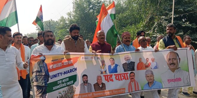 गाजीपुर। सरदार वल्लभभाई पटेल के 150 वीं जयंती वर्ष मे आत्मनिर्भर भारत संकल्प अभियान अंतर्गत भारतीय जनता पार्टी द्वारा विधानसभा स्तर पर आयोजित पद यात्रा क्रम मे गुरूवार को जहुराबाद विधानसभा मे पद यात्रा संयोजक जितेन्द्र नाथ पाण्डेय के नेतृत्व में सम्पन्न हुई।पद यात्रा मे शामिल लोग हाथ मे तिरंगा लहराते हुए देश भक्ति नारे लगा रहे थे। पदयात्रा के आगे आगे देशभक्ति गाने बज रहे थे। पदयात्रा श्री योगेन्द्र सिंह चौहान बडगैया इंटर कालेज लाला की बारी बरेजी से शुरू होकर आर एस कान्वेंट स्कूल बाराचवर में जनसभा में तब्दील हो गयी। मुख्यतिथि जिला प्रभारी राकेश त्रिवेदी ने सम्बोधित करते हुए कहा कि सरदार वल्लभ भाई पटेल का जीवन राष्ट्र के सम्मान व स्वाभिमान के लिए समर्पित रहा। उनके नेतृत्व में देश की छोटी छोटी रियासते भारत में स्वेच्छा से शामिल हुई। अप्रतिम राष्ट्र भक्त वल्लभभाई पटेल ने देश की एकता व अखंडता का संदेश देश वासियों को दिया। भाजपा नेता डा0सानन्द सिंह ने कहा कि भारत के महापुरुषों का जीवन इतिहास देश की विरासत है।जो राष्ट्रीय एकता, अखंडता और समृद्धि मे सहायक है। उन्होंने कहा कि विगत 65 वर्षो के शासन मे कांग्रेस सरकार ने महापुरूषो की भावनाओ को कुचलने का काम किया तो वही 2014 से प्रधानमंत्री नरेन्द्र मोदी के नेतृत्व में बनी सरकार ने देश के महापुरुषों, उनके इतिहास और विचार धारा को आत्मशात कर उनका सम्मान किया है ।जो भारत के आने वाली पीढ़ियों के लिए प्रेरणास्रोत हैं। पुर्व विधायक कालीचरण राजभर ने अपने जोशीले भाषण और लोक गीत के माध्यम से समा बांधने का कार्य किया। इस अवसर पर पुर्व जिलाध्यक्ष कृष्ण बिहारी राय,पुर्व जिलाध्यक्ष भानूप्रताप सिंह, जिलामंत्री प्रवीण सिंह, मण्डल अध्यक्ष बिपिन बिहारी सिंह टुनटुन, प्रफुल्ल सिंह, शुभाशुभ मिश्रा,धन्नजय ओझा, जिलापंचायत सदस्य राजकुमार सिंह झाबर,विजय नारायण शर्मा, धर्मेंद्र राय,ब्लाक प्रमुख ब्रजेन्द्र सिंह,ब्लाक प्रमुख मनोज गुप्ता,श्याम बिहारी वर्मा,धन्नजय चौबे, कृष्णानंद राय,आनन्द पाण्डेय,संतोष कुशवाहा,मयंक राय,विश्व प्रकाश अकेला,देवेन्द्र सिंह देवा,प्रसून सिंह,सुधीर कुमार सिंह,यशवन्त सिंह,आदि लोग मौजूद रहे।कार्यक्रम की अध्यक्षता यात्रा संयोजक जितेन्द्र नाथ पाण्डेय ने किया तथा संचालन भाजपा जिला उपाध्यक्ष प0श्यामराज तिवारी ने किया।
