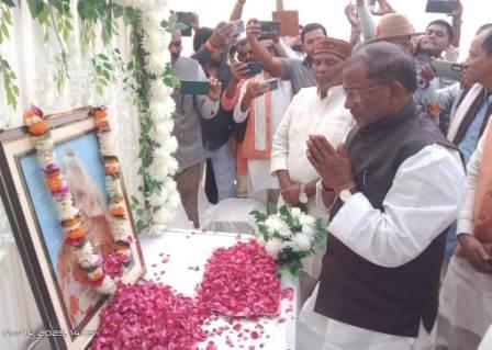 गाजीपुर। असम के राज्यपाल लक्ष्मण प्रसाद आचार्य शुक्रवार को सादात थाना क्षेत्र के ग्राम शिकारपुर पहुंचे। यहां उन्होंने भाजपा प्रदेश कार्य समिति के सदस्य प्रोफेसर शोभनाथ यादव की मां लौंगी देवी के निधन पर शोक संवेदना व्यक्त की और उनके चित्र पर पुष्प अर्पित किए। राज्यपाल के शिकारपुर पहुंचने पर बड़ी संख्या में आरएसएस और भाजपा के पदाधिकारी व कार्यकर्ता उनसे मिलने के लिए मौजूद रहे। राज्यपाल ने उपस्थित लोगों से एक-एक कर परिचय प्राप्त किया और उनका हालचाल जाना। उन्होंने प्रोफेसर शोभनाथ यादव के यूपी पुलिस में इंस्पेक्टर छोटे भाई उदयप्रताप यादव, प्रधान प्रतिनिधि डॉ. शंभूनाथ यादव, पुत्र सौरभ और भांजा चंद्रशेखर यादव तथा बड़े पिताजी के पुत्र सुदर्शन यादव से मिलकर शोक संवेदना प्रकट किया। घर के अंदर पहुंचकर राज्यपाल ने भाजपा नेता शोभनाथ यादव की पत्नी वंदना यादव और बेटी तनीशा यादव से मिलकर शतायु होकर गोलोक पारगमन करने वाली लौंगी देवी के निधन पर शोक जताया। इस अवसर पर भाजपा जिलाध्यक्ष ओमप्रकाश राय, पूर्व जिलाध्यक्ष सुनील सिंह, भानू प्रताप सिंह, प्रवीण सिंह, मुराहू राजभर, पंचदेव गोड़, राकेश सिंह सहित बड़ी संख्या में आरएसएस और भाजपा के कार्यकर्ता मौजूद थे। राज्यपाल के आगमन और प्रस्थान के समय उन्हें गार्ड ऑफ ऑनर दिया गया। सुरक्षा व्यवस्था के लिए एडिशनल एसपी राकेश मिश्रा, सीओ रामकृष्ण तिवारी, सादात एसओ वागीश विक्रम सिंह, शादियाबाद थानाध्यक्ष श्यामजी यादव के साथ ही खानपुर, सैदपुर, भुड़कुड़ा, बहरियाबाद थाने की फोर्स तैनात रही। साथ ही महिला कांस्टेबल भी तैनात रहीं।