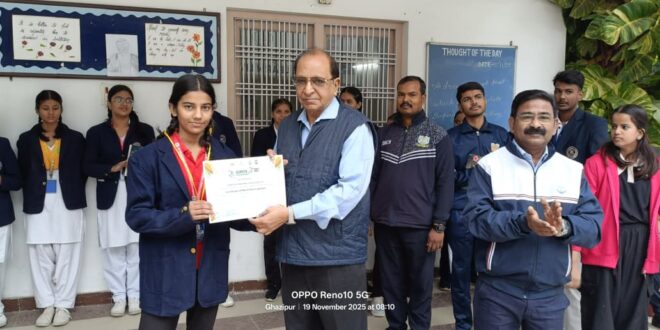 गाजीपुर। अस्मिता खेलो इंडिया किकबॉक्सिंग स्टेट चैंपियनशिप 2025 का आयोजन 15 और 16 नवंबर को स्वामी विवेकानंद सुभारती यूनिवर्सिटी मेरठ में संपन्न हुआ। इस प्रतियोगिता में पूरे प्रदेश से लगभग 400 खिलाड़ियों ने हिस्सा लिया। विभिन्न जिलों से आए हुए खिलाड़ियों के बीच रोमांचक मुकाबले हुए। इस प्रतियोगिता में गाजीपुर जिले के शाह फ़ैज़ पब्लिक स्कूल से बारह खिलाड़ियों ने अलग-अलग भारवर्ग में प्रतिभाग किया । जिसमें कोच एवं नेशनल रेफरी देवेंद्र प्रजापति तथा टीम मैनेजर परवीन सुल्ताना के सहयोग से शिल्पा यादव स्वर्ण पदक, अनुषा यादव रजत पदक, खुशी यादव, कृति कौर, अंशिका राय, साक्षी कुमारी, उषमा यादव, रिद्धि गुप्ता और विशाखा यादव कांस्य पदक प्राप्त कर अपने जिले एवं विद्यालय का नाम रोशन किया। उक्त अवसर पर विद्यालय के निदेशक डॉ नदीम अदहमी, निदेशिका डॉ मीना अदहमी एवं प्रधानाचार्य इकरामुल हक उपप्रधानाचार्य हनीफ अहमद ने कोच एवं बच्चों को उनके कार्यों के लिए बधाई दिया तथा भविष्य में और ऊंचाइयों को स्पर्श करने की शुभकामनाएं दिए।