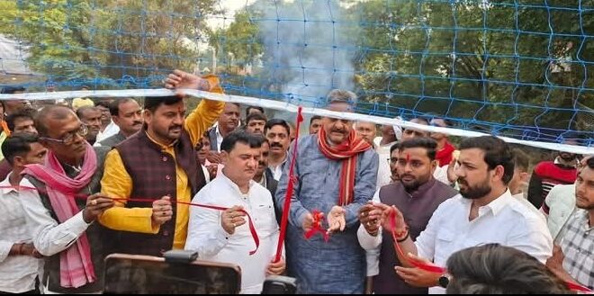 गाज़ीपुर। देवकली ब्लॉक के ग्राम बरहपुर में गुरुवार को अमर शहीद रामदीन कश्यप सीआरपीएफ क्षेत्रीय वॉलीबॉल प्रतियोगिता का शुभारंभ मुख्य अतिथि सांसद अफजाल अंसारी ने फीता काटकर किया। आयोजक राजू कश्यप ने मुख्य अतिथि सहित अन्य अतिथियों का माल्यार्पण कर स्वागत किया। उद्घाटन समारोह को संबोधित करते हुए सांसद अफजाल अंसारी ने शहीद रामदीन कश्यप को नमन किया और कहा कि युवाओं में देशभक्ति व खेल भावना को प्रोत्साहित करने का इससे बेहतर अवसर कोई नहीं हो सकता। कार्यक्रम में बरहपुर ग्राम प्रधान विजय कुमार सिंह सबलू, समाजसेवी शिव प्रसाद सिंह, सुशील कुमार जायसवाल, अमन जायसवाल, सिंटू कश्यप, गोलू, आशीष, राजू, अखिलेश, रविकांत, अभिषेक राहुल, राजीव, रवि, रितेश, सूरज सहित बड़ी संख्या में ग्रामीण व खेलप्रेमी उपस्थित थे। अंत में आयोजक राजू कश्यप सीआरपीएफ ने सभी अतिथियों और उपस्थित जनों के प्रति आभार व्यक्त किया।