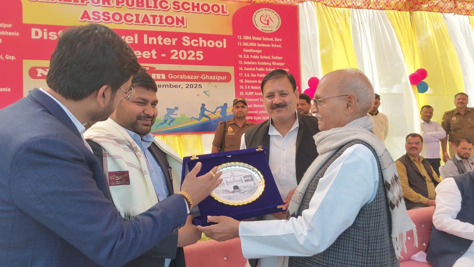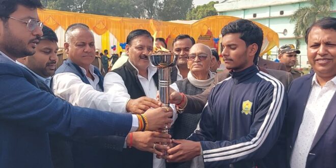 गाजीपुर। नेहरू स्टेडियम गाजीपुर में एथलेटिक प्रतियोगिता का भव्य शुभारंभ हुआ, जिसमें श्री प्रकाश सिंह जी जिला विद्यालय निरीक्षक गाजीपुर मुख्य अतिथि के रूप में सम्मिलित हुए। मुख्य अतिथि महोदय ने इस अवसर पर खेल के महत्व पर प्रकाश डालते हुए कहा कि इस प्रकार के आयोजन से बच्चों के अंदर अनुशासन , टीम भावना एवं सौहार्द का विकास होता है ।खेल जीवन का आदर्श है । स्वस्थ शारीरिक एवं मानसिक विकास का माध्यम है ।पूर्व सांसद एवं एसोसिएशन के अध्यक्ष जगदीश कुशवाहा जी ने सभी आगंतुकों का स्वागत एवं अभिनंदन करते हुए कहा कि खेल न केवल शरीर को मजबूत बनाते है बल्कि तनाव भी कम करते है एवं आत्मविश्वास तथा नेतृत्व जैसे गुण भी खेल के माध्यम से विकसित किया जा सकता है ।इस कार्यक्रम का शुभारंभ मुख्य अतिथि , एसोसिएशन के अध्यक्ष जगदीश कुशवाहा जी एवं सभी सम्मानित सदस्यगणों के द्वारा दीप प्रज्वलन करके किया गया। इस कार्यक्रम में मुख्य रूप से गाजीपुर के प्रतिष्ठित एवं मान्यता प्राप्त विद्यालयों के निदेशक और प्रधानाचार्य शामिल हुए। उक्त प्रतियोगिता में जिले के 25 सीबीएसई मान्यता प्राप्त विद्यालयों ने प्रतिभाग किया । इस प्रतियोगिता का शुभारंभ 15 नवंबर से ही हुआ है जिसमें बालक वर्ग तथा बालिका में खो-खो, कबड्डी, फुटबॉल, बॉलीबॉल, चेस, कैरम बोर्ड, तथा एथलेटिक सहित अनेक खेलो का आयोजन हुआ जिसमें गाजीपुर के सीबीएसई द्वारा मान्यता प्राप्त कुल 25 विद्यालयों के बच्चे प्रतिभाग किए। इस प्रतियोगिता का समापन तथा पुरस्कार वितरण कल दिनांक 03-12-2025 को नेहरू स्टेडियम गाजीपुर में में संपन्न होगा।