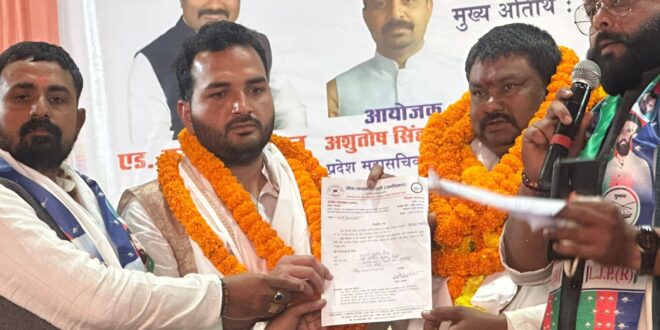 गाजीपुर। लोक जनशक्ति पार्टी (रामविलास) ने संगठन को मजबूती देने की दिशा में बड़ा कदम उठाते हुए प्रशांत मिश्रा को गाजीपुर (उत्तर प्रदेश) का जिला अध्यक्ष नियुक्त किया है। इस अवसर पर बनारस के फूलवरिया स्थित त्रिलोचन वाटिका में आयोजित भव्य कार्यक्रम के दौरान उन्होंने सैकड़ों समर्थकों की मौजूदगी में पद एवं गोपनीयता की शपथ ली। कार्यक्रम में उत्साह और संगठनात्मक एकजुटता साफ तौर पर देखने को मिली।शपथ ग्रहण समारोह में पार्टी के वरिष्ठ नेता, पदाधिकारी, कार्यकर्ता और विभिन्न क्षेत्रों से आए समर्थक बड़ी संख्या में शामिल हुए। समारोह को संबोधित करते हुए नवनियुक्त जिलाध्यक्ष प्रशांत मिश्रा ने पार्टी नेतृत्व के प्रति आभार व्यक्त किया और कहा कि उन्हें जो जिम्मेदारी सौंपी गई है, उसे वे पूरी निष्ठा, ईमानदारी और समर्पण के साथ निभाएंगे। उन्होंने संगठन को बूथ स्तर तक मजबूत करने, युवाओं और महिलाओं को अधिक से अधिक जोड़ने तथा आमजन की समस्याओं को प्रमुखता से उठाने का संकल्प दोहराया।कार्यक्रम में उपस्थित वक्ताओं ने कहा कि प्रशांत मिश्रा का सामाजिक जुड़ाव और संगठनात्मक अनुभव गाजीपुर जिले में पार्टी को नई दिशा देगा। उनके नेतृत्व में पार्टी का जनाधार बढ़ेगा और संगठनात्मक ढांचा और अधिक सुदृढ़ होगा। वक्ताओं ने यह भी कहा कि लोजपा (रामविलास) सामाजिक न्याय, समरसता और विकास के मुद्दों को लेकर आगे बढ़ रही है, जिसमें जिला इकाई की भूमिका बेहद अहम होगी।शपथ ग्रहण के पश्चात समर्थकों ने नारेबाजी और जयघोष के साथ नए जिलाध्यक्ष का जोरदार स्वागत किया। कार्यक्रम स्थल पर उत्सव जैसा माहौल बना रहा। अंत में संगठन विस्तार, सदस्यता अभियान और आगामी राजनीतिक कार्यक्रमों की रणनीति पर भी विचार-विमर्श किया गया।फूलवरिया स्थित त्रिलोचन वाटिका में आयोजित यह कार्यक्रम लोजपा (रामविलास) के लिए नई ऊर्जा और गाजीपुर की राजनीति में नई सक्रियता का संकेत माना जा रहा है।