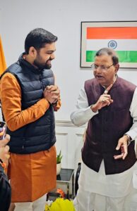 गाजीपुर। भाजपा के युवा नेता आदित्य सिंह ने नई दिल्ली में केन्द्रीय वित्त राज्यमंत्री एवं महाराजगंज लोकसभा क्षेत्र से जनप्रिय सांसद पंकज चौधरी जी को भारतीय जनता पार्टी, उत्तर प्रदेश का प्रदेश अध्यक्ष निर्विरोध निर्वाचित होने पर सौहार्दपूर्ण भेंट कर हार्दिक बधाई एवं शुभकामनाएं दी। आदित्य सिंह ने बताया कि पंकज चौधरी को संगठन और कार्यकर्ताओं दोनों में लंबा अनुभव है, उन्होने हमेशा कार्यकर्ताओं को सर्वोपरी माना है। इसीलिए कार्यकर्ताओं में पंकज चौधरी काफी लोकप्रिय हैं। 2027 के विधानसभा चुनाव में पंकज चौधरी के नेतृत्व में एक बार भाजपा बहुमत की सरकार बनायेगी।