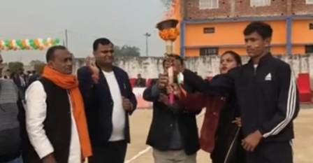 गाजीपुर। दुल्लहपुर थाना क्षेत्र स्थित जलालाबाद के अर्श पब्लिक स्कूल में तीन दिवसीय एनुअल स्पोर्ट मीट का शुभारंभ हो गया है। कार्यक्रम का उद्घाटन मशाल प्रज्वलन और सांस्कृतिक कार्यक्रमों के साथ किया गया। कार्यक्रम का विधिवत शुभारंभ सेंट जेवियर्स स्कूल के प्रिंसिपल संदीप दुबे, विद्यालय के प्रबंधक डॉ. अनिल यादव और जखनिया द्वितीय से जिला पंचायत प्रत्याशी अशोक यादव ने किया। अतिथियों ने मां सरस्वती के चित्र पर दीप प्रज्वलित कर और फीता काटकर कार्यक्रम की शुरुआत की। इसके बाद विद्यालय के छात्र-छात्राओं ने मनमोहक सांस्कृतिक कार्यक्रम प्रस्तुत किए। इन प्रस्तुतियों में पारंपरिक नृत्य, देशभक्ति गीत और सांस्कृतिक झलकियां शामिल थीं, जिन्होंने अभिभावकों और अतिथियों का ध्यान आकर्षित किया। खेल प्रतियोगिताओं की औपचारिक शुरुआत मशाल प्रज्वलन के साथ हुई। एक छात्र ने मशाल जलाकर पूरे खेल मैदान का चक्कर लगाया। इसके बाद मुख्य अतिथि संदीप दुबे, प्रबंधक डॉ. अनिल यादव, प्रधानाचार्या सपना राय और अशोक यादव ने संयुक्त रूप से मशाल प्रज्वलित कर खेल मैदान में फीता काटा और खेलों का उद्घाटन किया। बच्चों ने देशभक्ति गीतों पर साहसिक करतब भी दिखाए। स्पोर्ट मीट के अंतर्गत कबड्डी जैसे प्रमुख खेलों का आयोजन किया गया। कबड्डी प्रतियोगिता में जिला स्तर पर खेल चुकी स्कूल की ब्लू जर्सी टीम और स्पेशल बैच की ब्लैक जर्सी टीम के बीच रोमांचक मुकाबला देखने को मिला। खिलाड़ियों ने इस दौरान अनुशासन और खेल भावना का उत्कृष्ट प्रदर्शन किया।