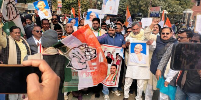 गाजीपुर। भाजपा सरकार द्वारा महात्मा गांधी राष्ट्रीय ग्रामीण रोजगार गारंटी अधिनियम (मनरेगा) को निरस्त करने और उसके नाम से राष्ट्रपिता महात्मा गांधी का नाम हटाने की साजिश के खिलाफ जिला एवं शहर कांग्रेस कमेटी गाजीपुर के संयुक्त तत्वावधान में 22 दिसंबर 2025 को सरजू पांडे पार्क से जुलूस के रूप में जिलाधिकारी कार्यालय पर पहुंचकर जोरदार एवं उग्र प्रदर्शन किया गया। प्रदर्शन के बाद कांग्रेस नेताओं ने जिला अधिकारी के माध्यम से राष्ट्रपति महोदय को संबोधित ज्ञापन सौंपा।इस मौके पर कांग्रेस नेताओं ने कहा कि भाजपा सरकार का यह कदम कोई सामान्य विधायी प्रक्रिया नहीं, बल्कि ग्रामीण गरीबों, मजदूरों और वंचितों के संवैधानिक अधिकारों पर सीधा हमला है। मनरेगा जैसे ऐतिहासिक अधिकार आधारित कानून को कमजोर करना दरअसल गरीबों से काम का अधिकार छीनकर उन्हें केंद्र सरकार की दया और कृपा पर निर्भर बनाने की साजिश है।कांग्रेस नेताओं ने आरोप लगाया कि मनरेगा से महात्मा गांधी का नाम हटाने की कोशिश भाजपा-आरएसएस की गांधी विरोधी, श्रम विरोधी और जनविरोधी मानसिकता को उजागर करती है। यह प्रयास राष्ट्रपिता के विचारों, मूल्यों और सामाजिक न्याय की अवधारणा को मिटाने का एक सुनियोजित राजनीतिक षड्यंत्र है।जिला अध्यक्ष सुनील राम ने कहा की “भाजपा सरकार गरीबों की रोटी, मजदूरों के हक और ग्रामीणों के सम्मान पर हमला कर रही है। मनरेगा को खत्म करने की साजिश दरअसल अमीर मित्रों को खुश करने और गरीबों को और गरीब बनाने की नीति का हिस्सा है। कांग्रेस पार्टी इस गांधी-विरोधी सरकार को ग्रामीण भारत के अधिकारों के साथ खिलवाड़ नहीं करने देगी।”शहर अध्यक्ष संदीप विश्वकर्मा ने कहा कि “भाजपा और आरएसएस को गांधी जी के नाम से डर लगता है, क्योंकि गांधी जी सत्य, समानता और संघर्ष के प्रतीक हैं। मनरेगा से गांधी जी का नाम हटाना उनके विचारों को मिटाने की नाकाम कोशिश है। भाजपा सरकार बताए कि उसे मजदूरों के अधिकार से इतनी नफरत क्यों है?”पूर्व विधायक अमिताभ अनिल दुबे ने कहा “मनरेगा ने करोड़ों ग्रामीण परिवारों को सम्मानजनक रोजगार दिया है, लेकिन भाजपा सरकार इसे बोझ मानती है। यह सरकार झूठे प्रचार और आंकड़ों के सहारे देश चला रही है और जमीनी सच्चाई से पूरी तरह कट चुकी है। कांग्रेस मनरेगा की रक्षा के लिए आर-पार की लड़ाई लड़ेगी।”एआईसीसी सदस्य रविकांत राय ने कहा कि “मनरेगा को कमजोर करना संविधान की आत्मा पर हमला है। भाजपा सरकार सामाजिक न्याय, समानता और गरीब कल्याण की अवधारणा को खत्म करना चाहती है। गांधी जी का नाम हटाकर यह सरकार देश के इतिहास और मूल्यों को मिटाने का असफल प्रयास कर रही है, जिसे कांग्रेस और देश की जनता कभी सफल नहीं होने देगी।”प्रदर्शन में 