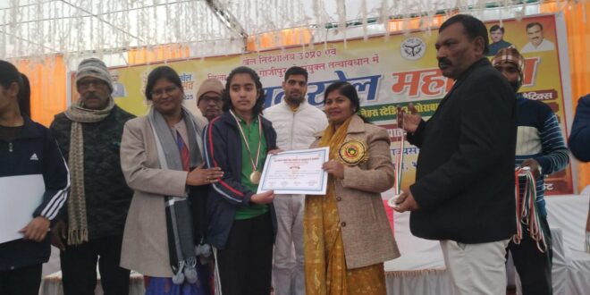गाजीपुर। जिला खेल कार्यालय गाजीपुर एवं जिला प्रशासन के तत्वावधान में आयोजित मा0 सासंद खेल महोत्सव का उद्घाटन डॉ0 संगीता बलवंत बिन्द सांसद राज्य सभा के कर कमलों द्वारा किया गया। उद्घाटन समारोह के अवसर पर सरिता अग्रवाल अध्यक्ष नगर पालिका गाजीपुर एवं परियोजना निदेशक दीनदयाल वर्मा, जिला युवा कल्याण अधिकारी दिलीप कुमार, सांसद खेल महोत्सव के संजोजक राजन प्रजापति, साधना राय, लालसा भारद्वाज, कु0 प्रीति गुप्ता, रासबिहारी राय, सन्तोष जायसवाल, मुन्ना राय, खो-खो संघ के सचिव विपिन बिहारी राय, एथलेटिक्स संध के अध्यक्ष अमरजीत सिंह उपस्थित थे, सभी अतिथियों का स्वागत क्रीड़ा अधिकारी अरविन्द यादव के द्वारा किया गया। उक्त प्रतियोगिता पर सांसद ने नेशनल विजेता खिलाड़ियों को सम्मानित किया तथा भविष्य में गाजीपुर के खेल को आगे बढ़ाने हेतु हर सम्भव सहायता करने का आश्वासन दिया। खो-खो बालिका वर्ग, एथलेटिक्स बालक/बालिका वर्ग, फुटबाल बालक/बालिका वर्ग एवं क्रिकेट बालक/बालिका वर्ग के प्रतियोगिता का आयोजन किया गया। जिसमें लगभग 500 खिलाड़ियों ने प्रतिभाग किया, खो-खो खेल में कुल 05 टीमों ने प्रतिभाग किया जिसमें सीनियर बालिका वर्ग के फाईनल मैंच सदर बनाम जंगीपुर के मध्य खेला गया, जिसमें सदर 13-11 अंकों से सदर विजयी रही। जूनियर वर्ग में फाईनल मैंच सदर बनाम सैदपुर के मध्य खेला गया, जिसमें सदर 15-06 अंकों से सदर विजयी रही। सबजूनियर बालिका वर्ग में सदर प्रथम स्थान प्राप्त किया। फुटबाल प्रतियोगिता में कुल 06 टीमों ने प्रतिभाग किया, जूनियर बालक वर्ग के फाईनल मैंच सदर बनाम जंगीपुर के मध्य खेला गया, जिसमें सदर 15-10 अंकों से सदर विजयी रही।