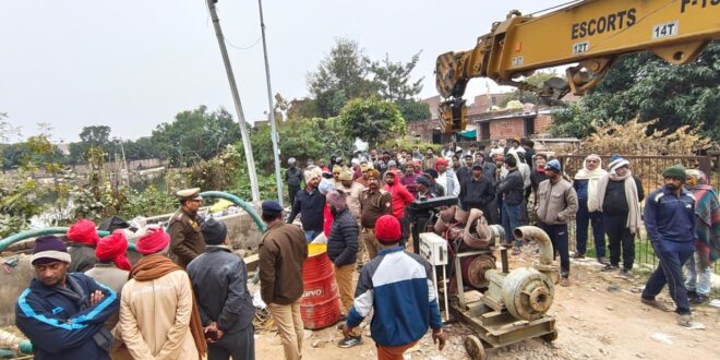 गाजीपुर। पुलिस अधीक्षक द्वारा थाना ग़हमर के खेलुराय पट्टी में हुई घटना के संबंध में घटनास्थल का पुनः भ्रमण किया गया विदित है कि 24/25.12.2025 की रात में ग़हमर थाना क्षेत्र के खेलुराय पट्टी में घटना हुई थी मौके पर दो युवकों के शव मिले थे जबकि तीसरे युवक की तलाश में लगातार SDRF NDRF की टीमें तथा स्थानीय गोताखोरों के माध्यम से तलाशी अभियान चलाया जा रहा है ड्रोन के माध्यम से थर्मल स्कैनिंग भी कराई जा रही आज पुलिस अधीक्षक द्वारा स्वयं मौके पर पहुंचकर तालाब से पानी को निकलवाने हेतु निर्देशित किया गया एवं पीड़ित के परिजनों से वार्ता की गई इस दौरान अपर पुलिस अधीक्षक ग्रामीण क्षेत्राधिकारी जमानिया एवं SDRF NDRF की टीम एवं अन्य अधिकारी कर्मचारीगण उपस्थित रहे उक्त प्रकरण में त्वरित कार्यवाही करते हुए पुलिस मुठभेड़ में एक अभियुक्त तथा विगत दिवस एक अन्य अभियुक्त और अभियुक्ता को गिरफ्तार किया जा चुका है पुलिस अधीक्षक महोदय के निर्देशानुसार पुलिस की विभिन्न टीमें तलाशी अभियान में जुटी हुई हैं|