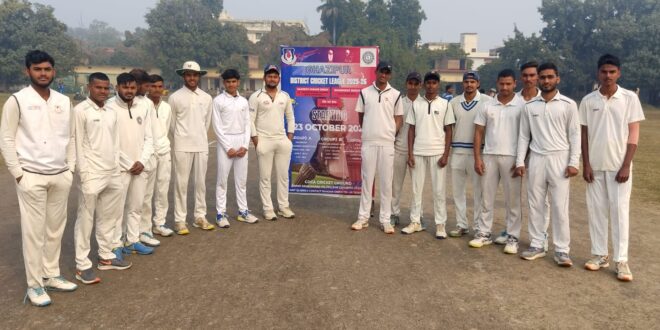 गाजीपुर डिस्ट्रिक्ट क्रिकेट एसोसिएशन (सबद्ध – उत्तर प्रदेश क्रिकेट एसोसिएशन) के तत्वाधान में गाजीपुर के स्थानीय स्वामी सहजानंद स्नातकोत्तर महाविद्यालय गाजीपुर के जीडीसीए मैदान पर खेले जा रहे गाजीपुर डिस्ट्रिक्ट क्रिकेट लीग 2025 श्रृंखला के अंतर्गत आज राउंड वन का पहला नॉक आउट मैच सीपीसी-येलो और अजंता – ए के बीच खेला गया | आज के पहले नॉक आउट मैच में सीपीसी-येलो ने टॉस जीतकर पहले बल्लेबाजी करने का निर्णय लिया | पहले बल्लेबाजी करते हुए सीपीसी-येलो की टीम ने संजय राजभर ने नाबाद 61 व सुनील कुशवाहा के 48 रन की बदौलत मैच के 35 वें ओवर की चौथी गेंद पर 218 रनों के स्कोर पर आल आउट हो गई | अजंता – ए के तरफ से अमित यादव ने सर्वाधिक 3, संजीव शर्मा ने -2 विकेट तथा अंश यादव, मो० आरिफ व कप्तान आनंद यादव ने 1-1 विकेट लिया | 219 रनों के लक्ष्य का पीछा करने मैदान पर उतरी अजंता – ए की टीम मैच के 29वें ओवर की चौथी गेंद पर मो० आरिफ के 47 तथा अमित यादव के 36 रनों की बदौलत 170 रन बनाकर आल आउट हो गई | सीपीसी-येलो के तरफ से कप्तान अश्वनी राय व सक्षम यादव ने सर्वाधिक 3-3 विकेट एवं महतिम यादव ने 2 तथा सुनील कुशवाहा ने 1 विकेट लिया | आज के मैच में स्मृति राय एवं रोहित ने अंपायर तथा सिद्धार्थ, आयुष, तनय और शौर्या ने स्कोरर की भूमिका निभाई | श्रृंखला का अगला मैच कल सीपीसी-ब्लू और अजंता सैदपुर – बी के बीच खेला जायेगा |