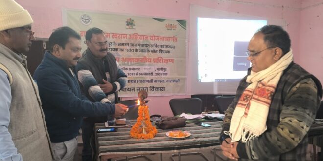 गाजीपुर। देवकली ब्लाक मुख्यालय परिसर मे वाराणसी मंडल के पंचायत उपनिदेशक के मार्गदर्शन में ग्राम पंचायत को स्वयं आर्थिक रूप से स्वालम्बी बनाने के लिए ग्राम पंचायत सचिव एवं पंचायत सहायकों का दो दिवसीय प्रशिक्षण शिविर आयोजित किया गया। शिविर को संबोधित करते हुए संजय गुप्ता ने कहा कि ग्राम पंचायत में स्वयं के आय के स्रोत को बढ़ाने के लिए सचिवालय द्वारा दी जा रही सेवाओं को बढ़ाना होगा, ऐसे भवन जो मरम्मत के अभाव में पड़े है उस भवन को मरम्मत करा कर किराये पर देना, साप्ताहिक मेले का आयोजन,तालाब का पट्टा करना,गांव में मेले का आयोजन, हाट बाजार लगाकर ऐसे अन्य आय के स्रोतों की तलाश करना होगा ताकि गांव पंचायत आर्थिक रूप से स्वालम्बी हो सके।प्रशिक्षण का कार्य संजय शर्मा,गोपाल यादव,सुनील सिंह,रामबचन ने किया।इस अवसर पर अजीत कुमार गोंङ,विरेन्द्र कुमार यादव, मनोज कुमार चॊबे,कमलेशजायसवाल,निखिल,हिमेश सहित अनेक ग्राम विकास अधिकारी व ग्राम पंचायत अधिकारी मॊजूद थे।कार्यक्रम का संचालन मनोज कुमार चॊबे ने किया।