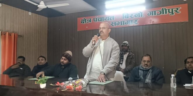 गाजीपुर। बिरनो ब्लॉक सभागार में क्षेत्र पंचायत सदस्यों एवं ग्राम प्रधानों की एक संयुक्त बैठक का आयोजन किया गया। बैठक का मुख्य उद्देश्य ब्लॉक क्षेत्र में संचालित विभिन्न विकास योजनाओं एवं कार्यों की समीक्षा करना तथा उनके प्रभावी और पारदर्शी क्रियान्वयन को सुनिश्चित करना रहा।बैठक में प्रधानमंत्री एवं मुख्यमंत्री योजनाओं सहित ग्राम पंचायत और क्षेत्र पंचायत स्तर पर चल रहे विकास कार्यों की प्रगति पर विस्तार से चर्चा की गई।अधिकारियों ने जनप्रतिनिधियों से फीडबैक लिया और लंबित कार्यों को शीघ्र पूरा कराने, गुणवत्ता बनाए रखने तथा समयबद्ध ढंग से योजनाओं को धरातल पर उतारने पर विशेष जोर दिया।बैठक के दौरान उपस्थित जनप्रतिनिधियों एवं अधिकारियों को अंगवस्त्र भेंट कर सम्मानित भी किया गया, जिससे कार्यक्रम का माहौल सौहार्दपूर्ण और उत्साहपूर्ण रहा। कार्यक्रम में प्रमुख रूप से ब्लॉक प्रमुख राजन सिंह, खंड विकास अधिकारी कौस्तुभ मणि पाठक, डॉ. गुरदेव मौर्य, विजय कुमार (एडीओ कृषि), बीरुमणी (सीडीपीओ), मन्नू सिंह, लल्लन सिंह, राजेन्द्र यादव, भूपेंद्र सिंह (एडीओ एसआईबी), सुरेश यादव, धनंजय प्रजापति, रामनवल यादव, अजीत दुबे, बिनोद पटेल, धर्मेंद्र शर्मा, पिंटू सिंह, गुड्डू गुप्ता, मेवा यादव सहित बड़ी संख्या में क्षेत्र पंचायत सदस्य, ग्राम प्रधान एवं अन्य लोग उपस्थित रहे।कार्यक्रम की अध्यक्षता खंड विकास अधिकारी कौस्तुभ मणि पाठक ने की, जबकि संचालन लल्लन सिंह द्वारा किया गया। बैठक के अंत में अधिकारियों ने सभी जनप्रतिनिधियों से आपसी समन्वय के साथ विकास कार्यों को गति देने और आम जनता को योजनाओं का अधिकतम लाभ दिलाने की अपील की।