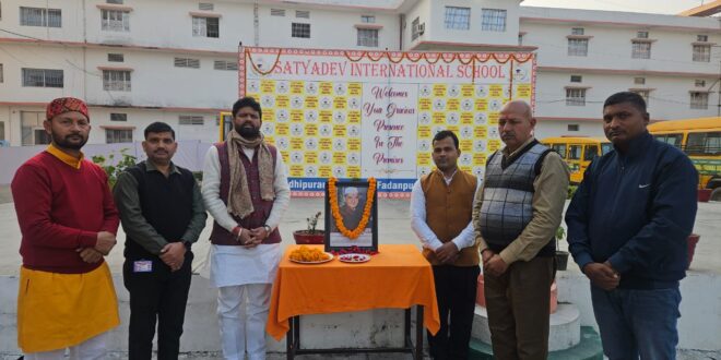 गाज़ीपुर जनपद के बोरसिया स्थित सत्यदेव इंटरनेशनल स्कूल में देश के पूर्व प्रधानमंत्री भारत रत्न डॉ. लाल बहादुर शास्त्री जी की पुण्यतिथि के अवसर पर एक श्रद्धांजलि कार्यक्रम का आयोजन किया गया। इस अवसर पर विद्यालय के चेयरमैन डॉ. सानंद सिंह के मार्गदर्शन में डॉ. लाल बहादुर शास्त्री जी के जीवन, उनके आदर्शों, सादगी, ईमानदारी और देशभक्ति पर विस्तार से प्रकाश डाला गया। कार्यक्रम के दौरान उनके चित्र पर माल्यार्पण कर पुष्पांजलि अर्पित की गई।डॉ. सानंद सिंह ने अपने संबोधन में कहा कि “डॉ. शास्त्री जी का जीवन हम सभी के लिए प्रेरणास्रोत है। ‘जय जवान, जय किसान’ का नारा आज भी देश की आत्मा को मजबूत करता है। विद्यार्थियों को उनके जीवन मूल्यों को अपनाकर आगे बढ़ना चाहिए।”कार्यक्रम में विद्यालय के शिक्षकगण, कर्मचारी एवं अन्य गणमान्य लोग उपस्थित रहे। सभी ने डॉ. शास्त्री जी के आदर्शों को अपने जीवन में आत्मसात करने का संकल्प लिया।विद्यालय परिवार द्वारा इस प्रकार के कार्यक्रमों के माध्यम से विद्यार्थियों में नैतिक मूल्यों, देशप्रेम और सामाजिक जिम्मेदारी की भावना विकसित करने का निरंतर प्रयास किया जा रहा है।