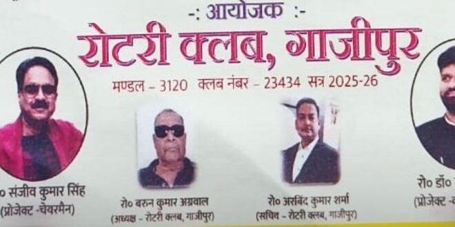 गाजीपुर। रोटरी क्लब द्वारा आगामी 25 जनवरी 2026 को जनपद के बोरसिया फदनपुर स्थित सत्यदेव ग्रुप ऑफ़ कॉलेजेज में आयोजित होनेवाले निःशुल्क नेत्र जांच परिक्षण शिविर के प्रोजेक्ट चेयरमैन रो० संजीव कुमार सिंह ने बताया कि इस शिविर के लिए अधिक संख्या में लोगों ने आवेदन किया है| शिविर के बारे में विस्तृत जानकारी देते हुए उन्होंने बताया कि 25 जनवरी 2026 को वाराणसी स्थिति आर.जे. शंकरा ऑय हॉस्पिटल के नेत्र विशेषज्ञ चिकित्सकों के दल द्वारा लाभार्थियों का नेत्र परीक्षण किया जाएगा तथा परीक्षण के उपरांत लेंस प्रत्यारोपण के योग्य लाभार्थियों को चिन्हित किया जायेगा| नेत्र परीक्षण के उपरांत सभी लाभार्थियों को वापस घर भेज दिया जायेगा| उन्होंने बताया कि लेंस प्रत्यारोपण के लिए चिन्हित लाभार्थियों को पुनः अगले दिन 26 जनवरी 2026 को पुनः प्रातः 10:00 बजे सत्यदेव ग्रुप ऑफ़ कॉलेजेज बुलाया जायेगा जहाँ से उन्हें वाहनों के द्वारा वाराणसी स्थिति आर.जे. शंकरा ऑय हॉस्पिटल ले जाया जायेगा| जहाँ उनका कुशल चिकित्सकों के हाथों लेंस प्रत्यारोपण किया जायेगा एवं उसके उपरांत उन्हें उनके गंतव्य के लिए रवाना कर दिया जायेगा| उन्होंने बताया कि आवेदन की संख्या निर्धारित लक्ष्य के करीब पहुँच चुका है| शेष जो भी लाभार्थी बचे हुए हैं उनसे उन्होंने अपील किया कि यथाशीघ्र वह अपना पंजीकरण करा लें| उन्होंने बताया कि शिविर की तैयारियां पूरी हो चुकी हैं| सभी सक्रिय सदस्यों को उत्तरदायित्व का आवंटन कर कर दिया गया है| निःशुल्क नेत्र जांच परिक्षण शिविर के प्रोजेक्ट को-चेयरमैन रो० डॉ. सानंद सिंह ने बताया कि इस शिविर के सम्बन्ध में ग्रामीण अंचल के लगभग सभी ग्राम प्रधानों व पंचायत सदस्यों से लगातार संपर्क बनाया जा रहा है ताकि कोई भी योग्य लाभार्थी वंचित न रहे| उन्होंने बताया कि परीक्षण के लेकर ऑपरेशन तक सभी चरण पूर्णतया निःशुल्क है| लाभार्थी से किसी भी प्रकार का कोई शुल्क नहीं लिया जायेगा| यहाँ तक कि उनके हॉस्पिटल ले जाने व वापस उन्हें लाने का भी पूरा खर्च संस्था द्वारा वहन किया जायेगा| रोटरी सदस्य होने के नाते मैं व्यक्तिगत इस शिविर के लिए सक्रियतापूर्वक लगा हूँ|