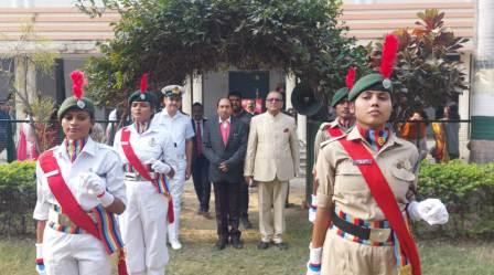 गाजीपुर। स्नातकोत्तर महाविद्यालय, गाजीपुर परिसर में इस वर्ष भी गणतंत्र दिवस पूरे उत्साह और गरिमा के साथ मनाया गया। इस अवसर पर उत्कृष्ट कार्य करने वाले शिक्षकों एवं कर्मचारियों को प्रशस्ति-पत्र प्रदान कर सम्मानित किया गया। कार्यक्रम के मुख्य अतिथि उत्तर प्रदेश सरकार के अपर महाधिवक्ता अजित कुमार सिंह रहे। कुशलपाल श्रोताशाला पर मुख्य अतिथि एवं प्राचार्य द्वारा संयुक्त रूप से राष्ट्रीय ध्वज तिरंगा फहराया गया। ध्वजारोहण के बाद राष्ट्रगान और देशभक्ति के नारों से पूरा परिसर गूंज उठा। संगीत विभाग के छात्र-छात्राओं ने देशभक्ति गीत प्रस्तुत कर माहौल को भावुक और ऊर्जा से भर दिया। कार्यक्रम का खास आकर्षण नेवल और आर्मी विंग के एनसीसी कैडेट्स की परेड रही। मुख्य अतिथि ने परेड का निरीक्षण किया और सलामी ली और उनके अनुशासन व समर्पण की सराहना की। इस मौके पर महाविद्यालय के उन शिक्षकों और कर्मचारियों को भी सम्मानित किया गया जिन्होंने हाल के दिनों में उत्कृष्ट कार्य किया था। सम्मानित होने वाले शिक्षकों में डॉ. आलोक रंजन श्रीवास्तव, डॉ. शैलेन्द्र सिंह, डॉ. इन्दीवर रत्न पाठक, प्रोफेसर रविशंकर सिंह, प्रोफेसर जी सिंह, प्रोफेसर संजय चतुर्वेदी, डॉ. प्रतिमा सिंह, डॉ. मनोज कुमार मिश्र डॉ. अतुल कुमार सिंह, अशोक कुमार सिंह, शिवम शर्मा एवं रोवर्स एवं रेंजर्स के राष्ट्रीय जम्बूरी चैम्पियनशिप जीत कर आने वाले सभी रोवर्स एवं रेंजर्स टीम को प्रमाण-पत्र देकर सम्मानित किया गया। मुख्य अतिथि ने अपने संबोधन में गणतंत्र दिवस के महत्व को याद दिलाते हुए कहा कि संविधान हमें अधिकार देता है, लेकिन कर्तव्यों की जिम्मेदारी भी उतनी ही बड़ी है। उन्होंने युवाओं से अपील की कि वे राष्ट्र निर्माण में सक्रिय भूमिका निभाएं। कार्यक्रम के अंत में प्राचार्य प्रो. डॉ. राघवेन्द्र कुमार पाण्डेय ने छात्रों को संबोधित करते हुए कहा कि भारत आज वैश्विक स्तर पर अर्थव्यवस्था और तकनीक के क्षेत्र में तेजी से आगे बढ़ रहा है। उन्होंने युवाओं से तकनीक का सही उपयोग कर अध्ययन को बेहतर बनाने और देश को मजबूत बनाने में योगदान देने का आह्वान किया। देशभक्ति के गीतों, सम्मान समारोह और प्रेरक संदेशों के साथ कार्यक्रम का समापन हुआ।