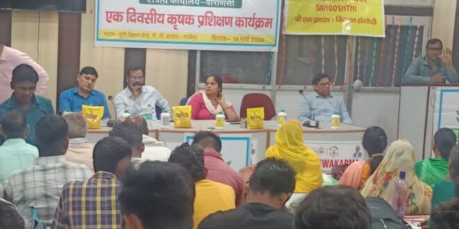 गाजीपुर। कृषि विज्ञान केंद्र, पीजी कॉलेज गाजीपुर में नेशनल फर्टिलाइजर्स लिमिटेड (भारत सरकार का उपक्रम) के सहयोग से एक दिवसीय कृषक प्रशिक्षण कार्यक्रम का सफल आयोजन किया गया। कार्यक्रम में कुल 70 कृषकों ने भागीदारी की तथा आधुनिक कृषि तकनीकों एवं उर्वरक प्रबंधन से संबंधित महत्वपूर्ण जानकारियां प्राप्त कीं। कार्यक्रम की अध्यक्षता करते हुए कृषि विज्ञान केंद्र के वरिष्ठ वैज्ञानिक एवं अध्यक्ष डॉ. विनोद कुमार सिंह ने किसानों को संतुलित उर्वरक प्रबंधन, जैविक खेती तथा मृदा स्वास्थ्य के महत्व पर विस्तार से जानकारी दी। उन्होंने बताया कि संतुलित पोषण प्रबंधन अपनाकर किसान उत्पादन लागत घटाने के साथ-साथ फसल की गुणवत्ता में भी सुधार कर सकते हैं।नेशनल फर्टिलाइजर्स लिमिटेड के क्षेत्रीय प्रबंधक राजकुमार ने ‘यूरिया गोल्ड’ के उपयोग, ड्रोन तकनीक द्वारा उर्वरक एवं कीटनाशकों के छिड़काव तथा इसके लाभों पर विस्तृत प्रकाश डाला। उन्होंने फसलों में सल्फर की उपयोगिता और संतुलित उर्वरक प्रयोग की आवश्यकता पर भी किसानों को जागरूक किया।इस अवसर पर उन्होंने प्रधानमंत्री प्रोत्साहन योजना (PM-PRANAM) की जानकारी देते हुए बताया कि योजना का उद्देश्य रासायनिक उर्वरकों के अत्यधिक उपयोग को कम कर वैकल्पिक एवं टिकाऊ उर्वरकों को बढ़ावा देना है। इसके तहत राज्यों को उर्वरक सब्सिडी में बचत करने और सतत कृषि पद्धतियों को अपनाने के लिए प्रोत्साहित किया जाता है। योजना के माध्यम से जैविक खेती, नैनो उर्वरकों तथा अन्य आधुनिक तकनीकों को बढ़ावा दिया जा रहा है, जिससे किसानों की लागत में कमी, मृदा स्वास्थ्य में सुधार तथा पर्यावरण संरक्षण सुनिश्चित हो सके।वैज्ञानिक डॉ. ओमकार सिंह ने वर्तमान फसलों में कीट एवं रोग प्रबंधन के प्रभावी उपाय बताए, जबकि वैज्ञानिक डॉ. प्रमोद कुमार सिंह ने जैव उर्वरकों के उपयोग एवं उनके लाभों पर विस्तार से जानकारी दी। गृह वैज्ञानिक डॉ. रागिनी दुबे ने पोषण, संतुलित आहार एवं परिवार स्वास्थ्य से जुड़े महत्वपूर्ण पहलुओं पर प्रकाश डाला।कार्यक्रम का संचालन नेशनल फर्टिलाइजर्स लिमिटेड के मार्केटिंग अधिकारी संजय कुमार अग्रहरि ने किया। कार्यक्रम में आशीष कुमार बाजपेयी, आशुतोष सिंह एवं सुनील कुमार सहित अन्य गणमान्य व्यक्तियों की उपस्थिति रही। साथ ही एन.एफ.एल. के श्री विभव मौर्य, लेखाधिकारी भी कार्यक्रम में मौजूद रहे।अंत में किसानों को प्रोत्साहन स्वरूप बेंटोनाइट सल्फर वितरित किया गया तथा धन्यवाद ज्ञापन के साथ कार्यक्रम का समापन किया गया।